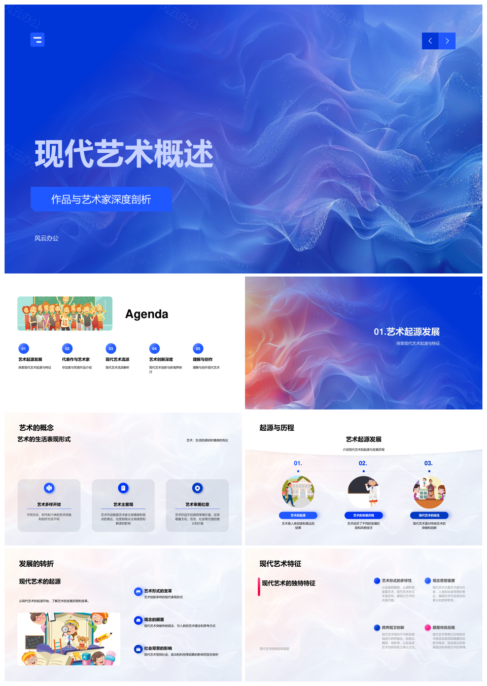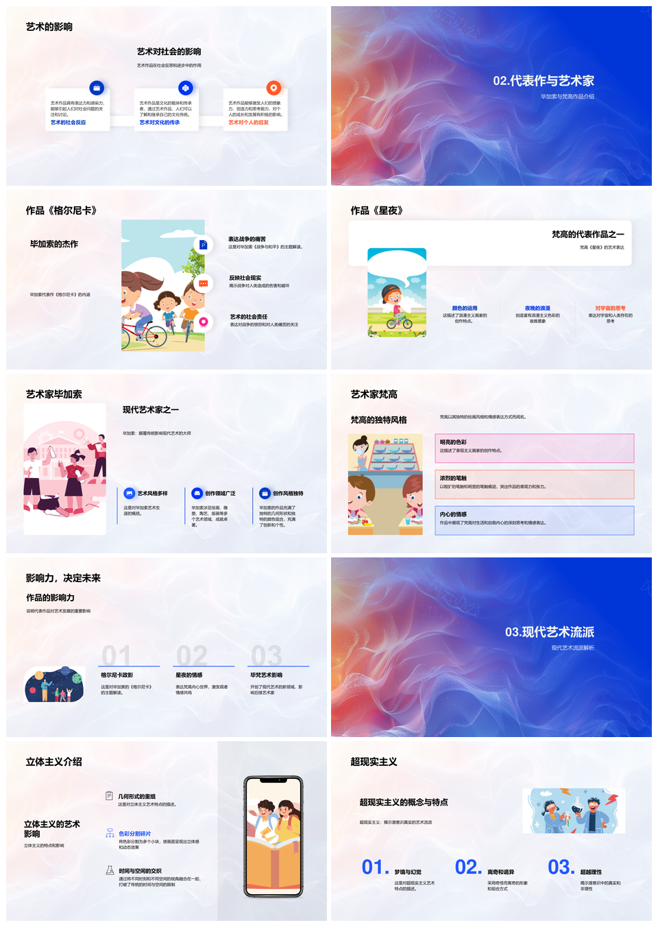 现代艺术毕加索梵高格尔尼卡星夜主义流派PPT模板