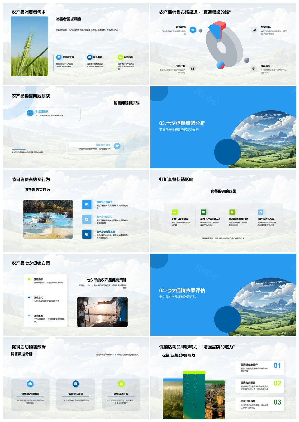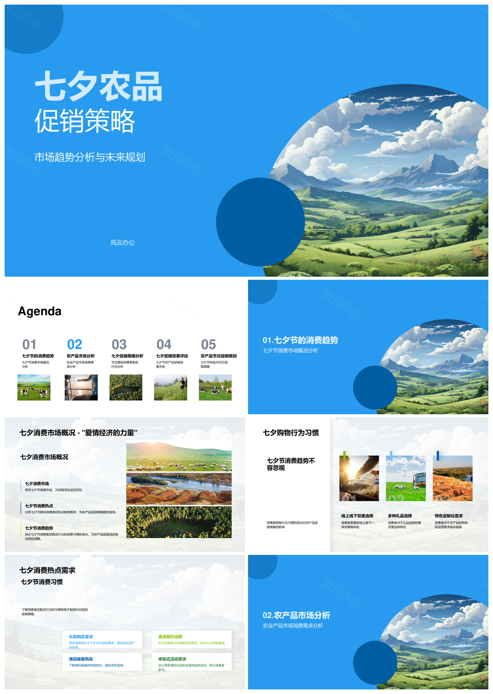 风云办公提供的七夕农产品促销策略与消费趋势分析PPT模板,下载格式为pptx,一共23页,作品中文字及图均可以修改和编辑,图片更改请在作品中右键图片并更换,文字修改请直接点击文字进行修改。