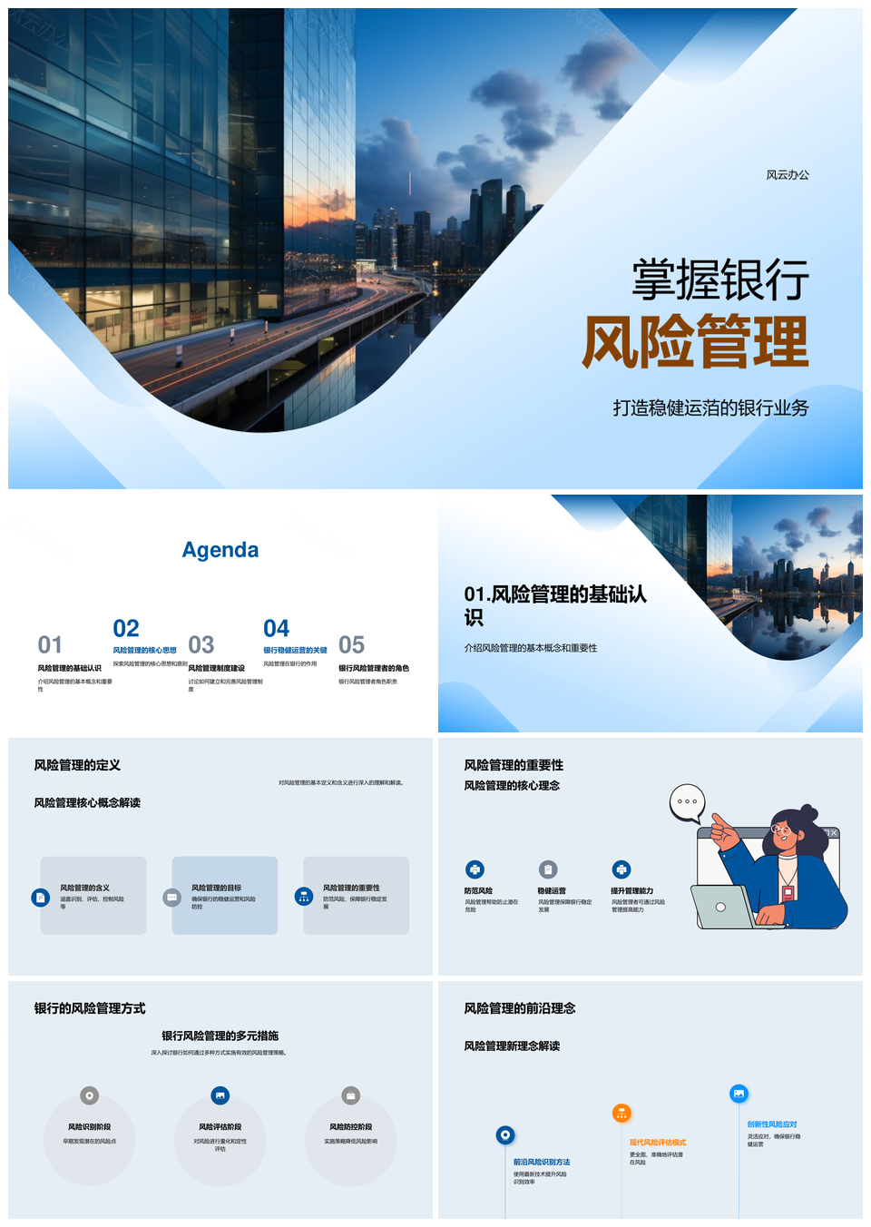 风云办公提供的银行风险管理稳健运营全员制度保障PPT模板,下载格式为pptx,一共28页,作品中文字及图均可以修改和编辑,图片更改请在作品中右键图片并更换,文字修改请直接点击文字进行修改。