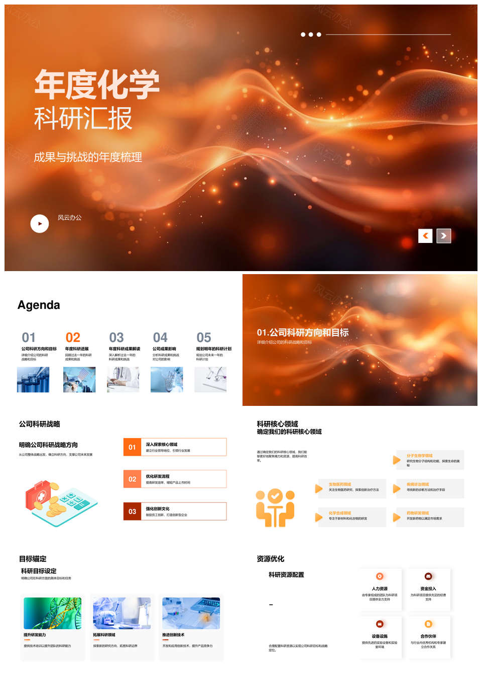 化学科研年度战略核心成果挑战资源合作PPT模板推荐