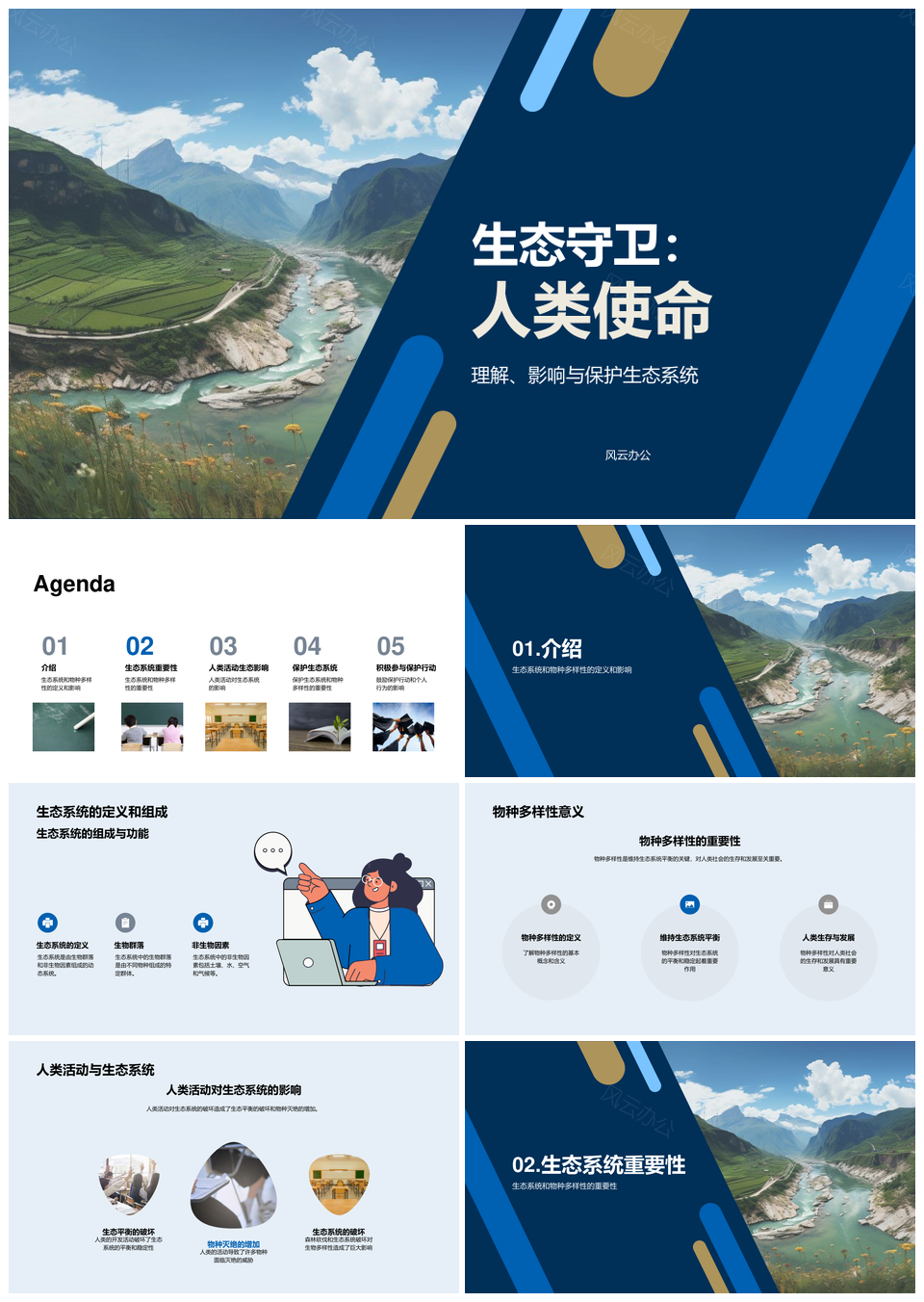 风云办公提供的守护生态平衡拯救物种多样性PPT模板,下载格式为pptx,一共23页,作品中文字及图均可以修改和编辑,图片更改请在作品中右键图片并更换,文字修改请直接点击文字进行修改。