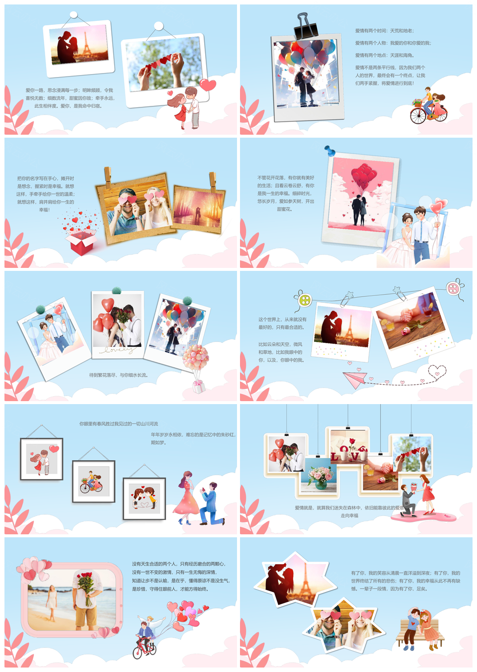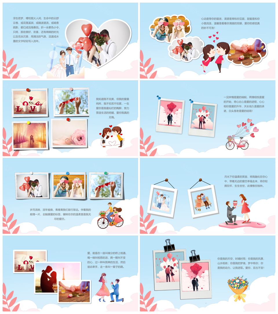 2025小清新七夕情侣浪漫告白电子相册PPT模板推荐
