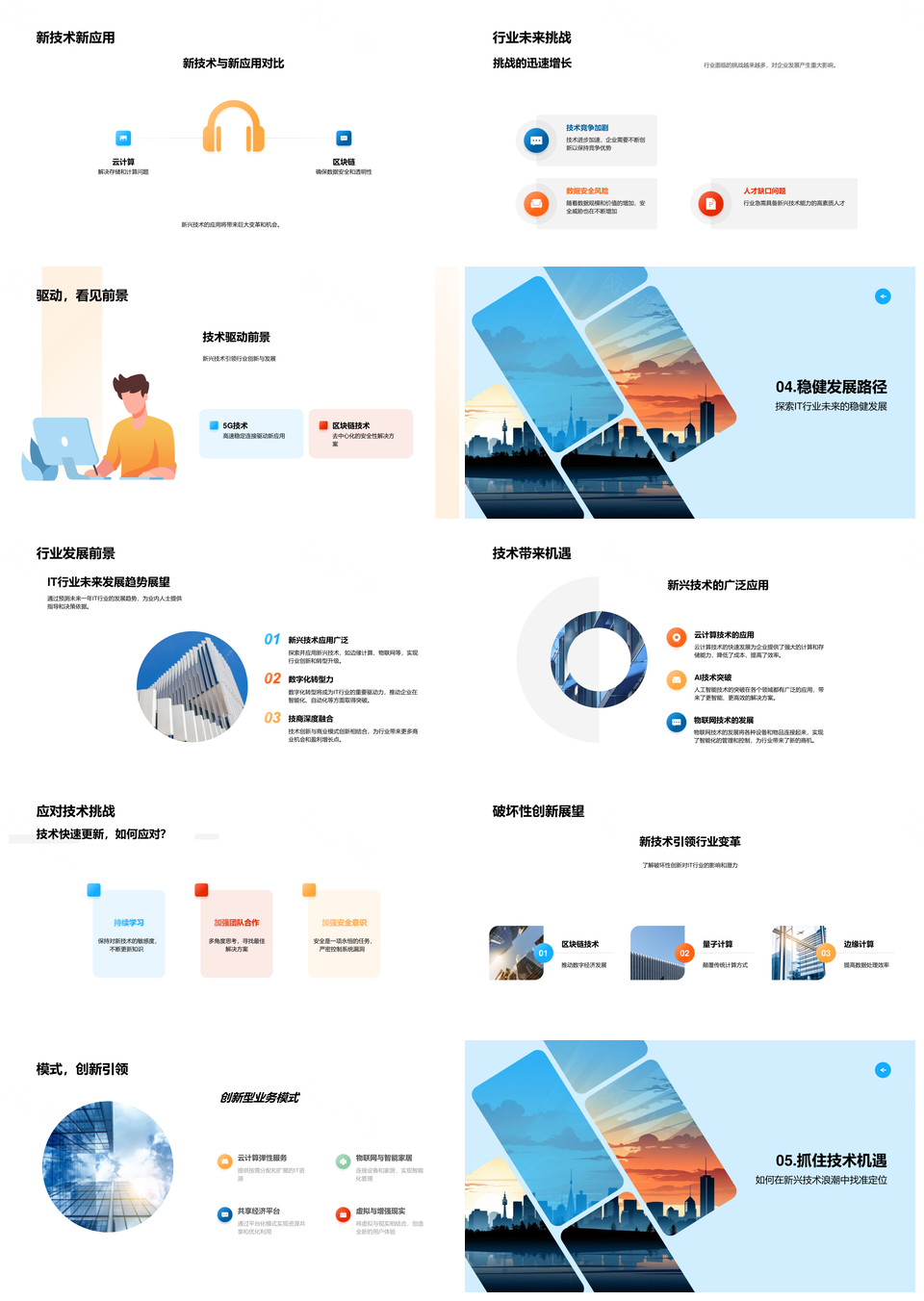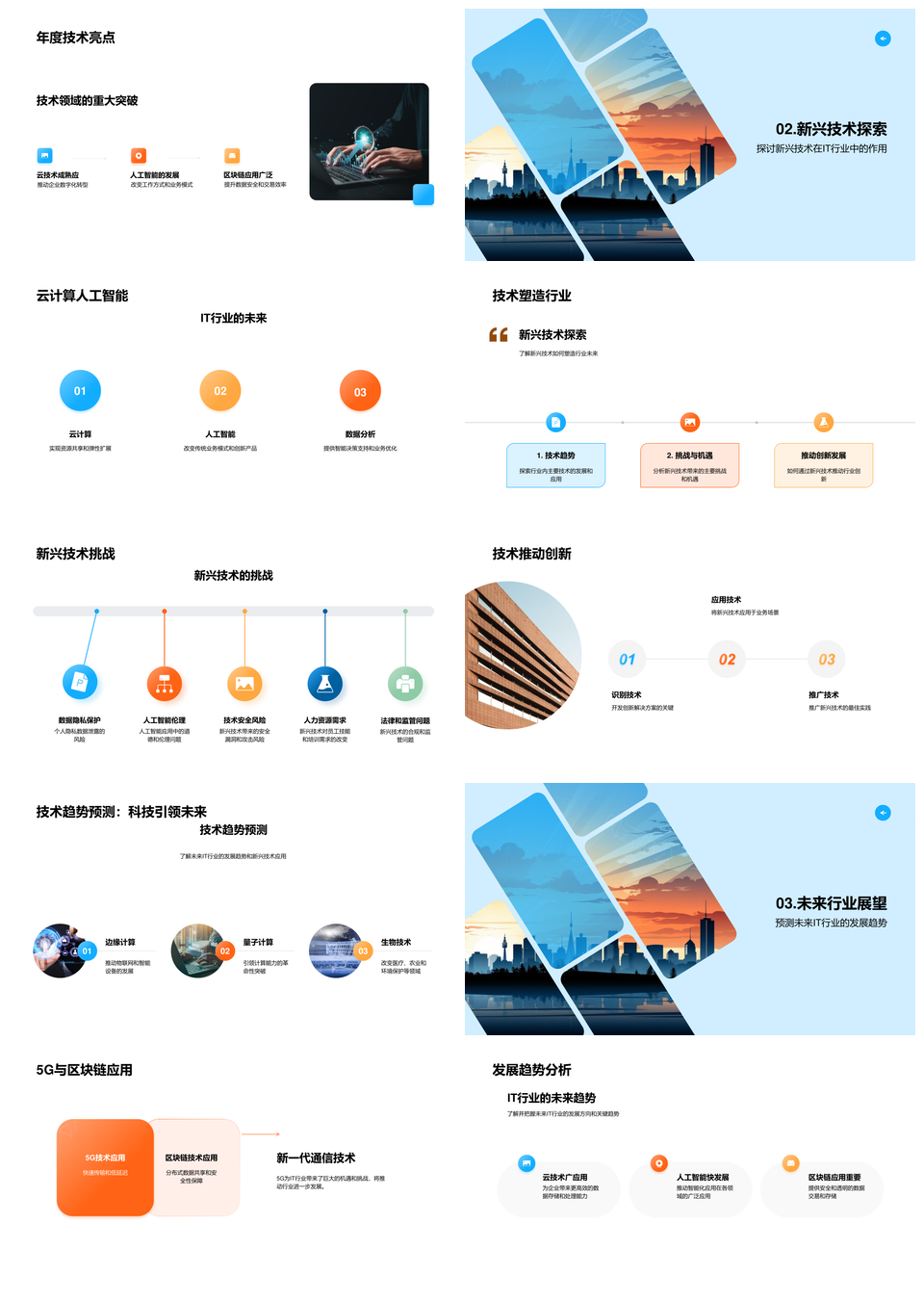IT新兴技术云计算人工智能5G区块链趋势挑战应对PPT模板推荐