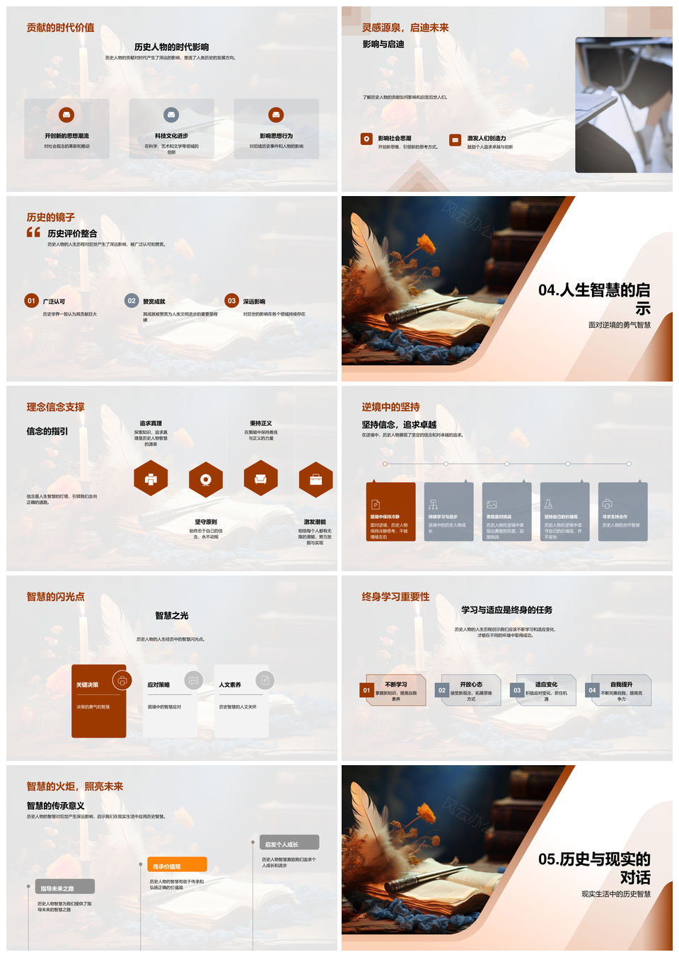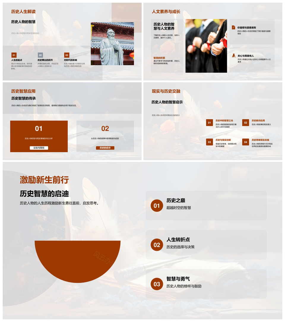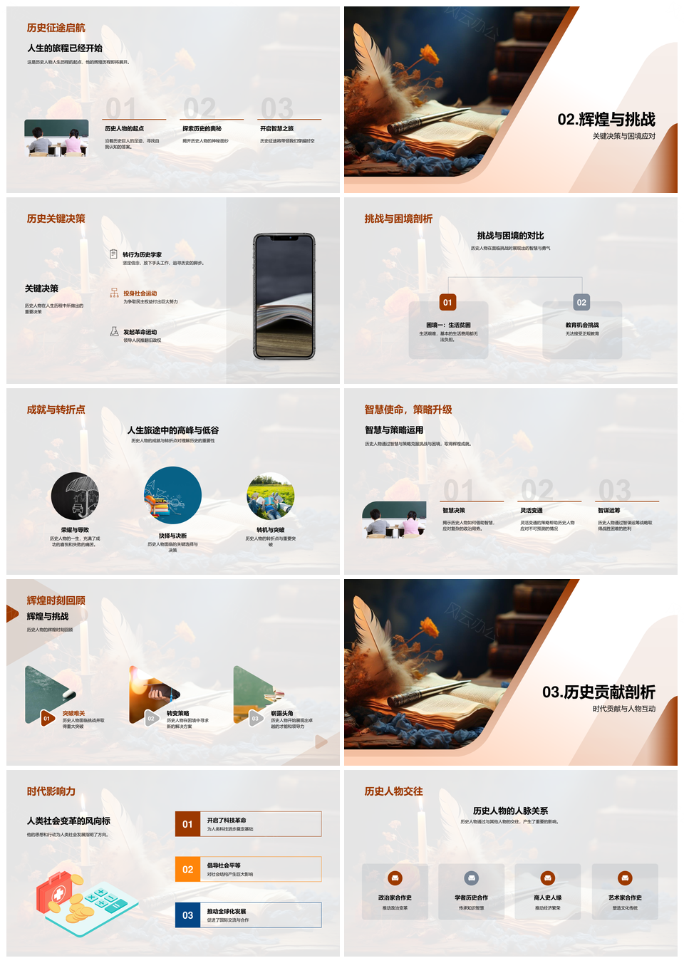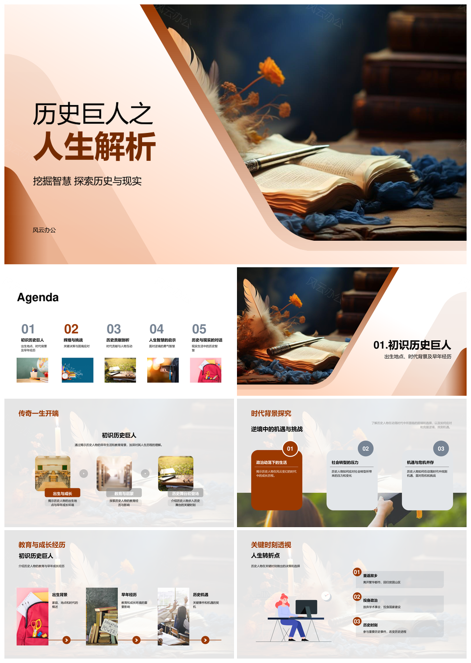 风云办公提供的历史巨人人生智慧时代挑战贡献解析PPT模板,下载格式为pptx,一共33页,作品中文字及图均可以修改和编辑,图片更改请在作品中右键图片并更换,文字修改请直接点击文字进行修改。