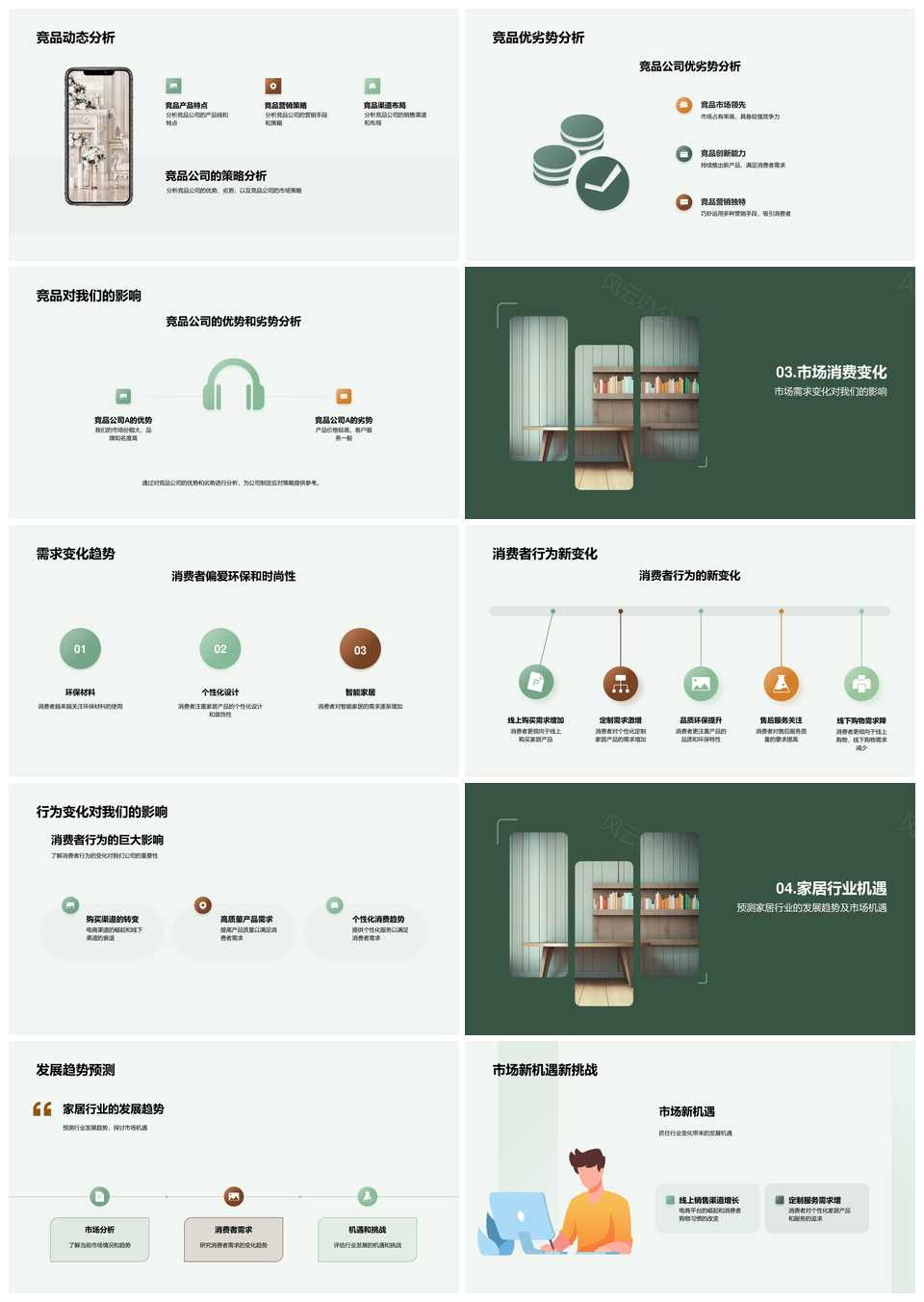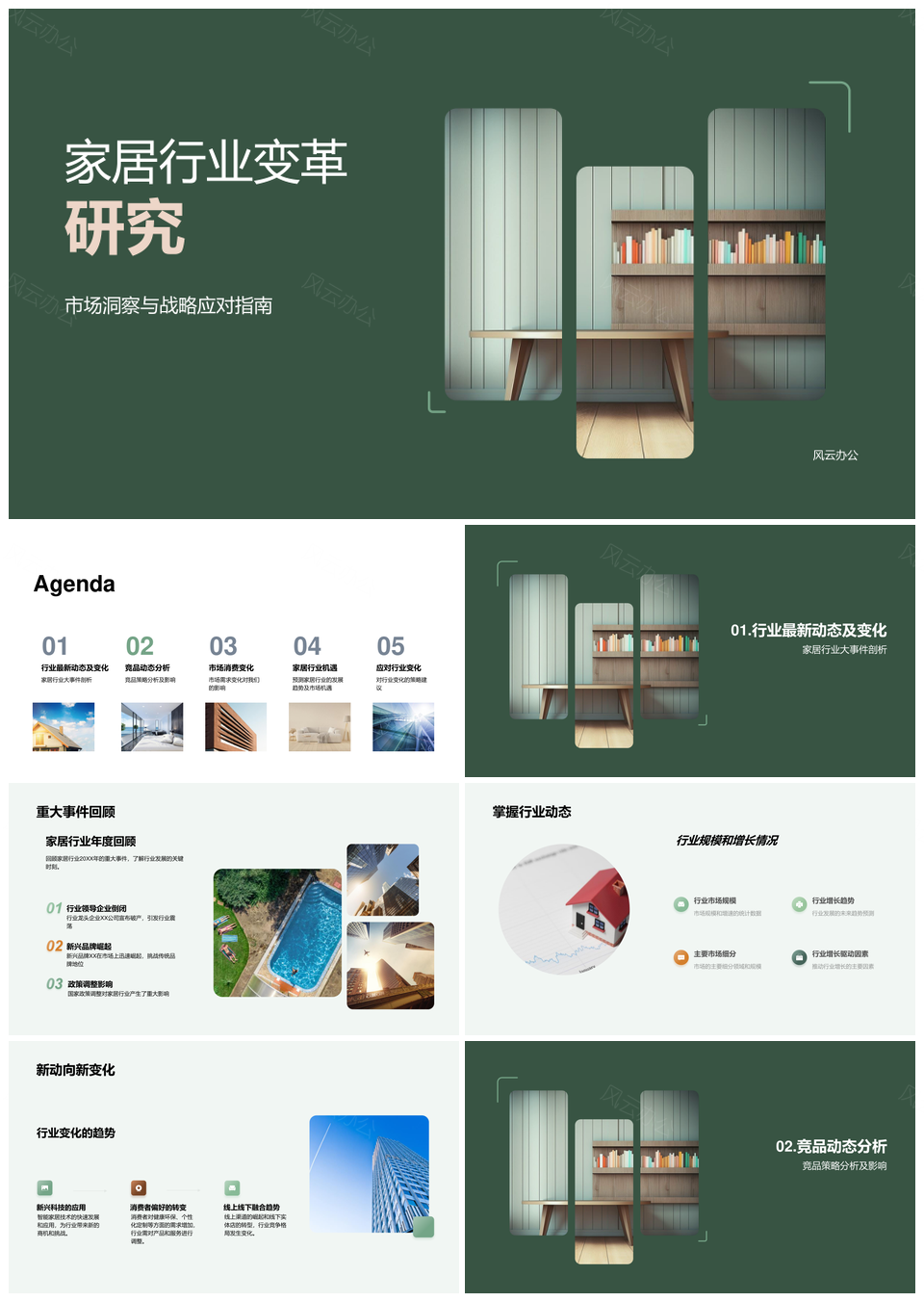 风云办公提供的家居行业变革战略应对与消费需求洞察PPT模板,下载格式为pptx,一共23页,作品中文字及图均可以修改和编辑,图片更改请在作品中右键图片并更换,文字修改请直接点击文字进行修改。