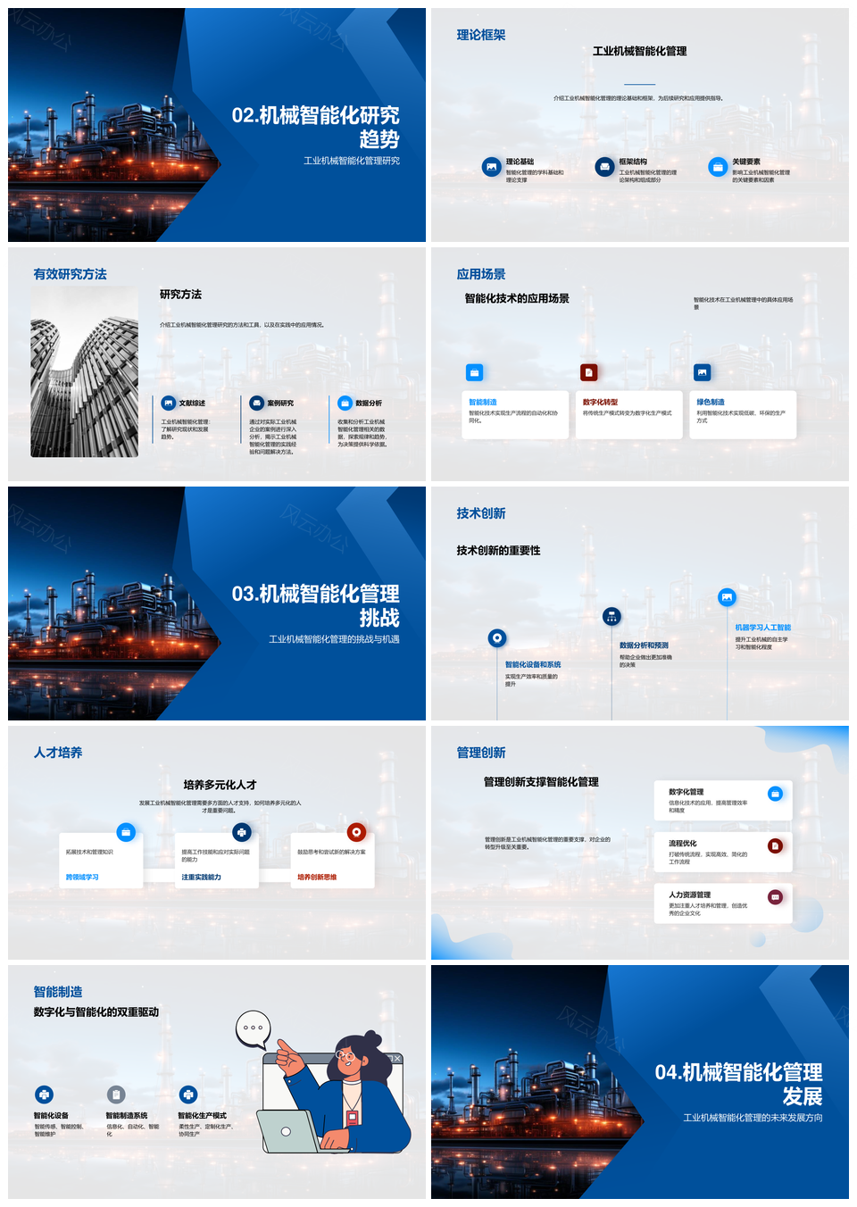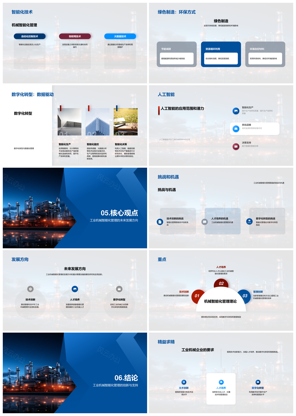 风云办公提供的工业机械智能化挑战机遇与趋势探索PPT模板,下载格式为pptx,一共30页,作品中文字及图均可以修改和编辑,图片更改请在作品中右键图片并更换,文字修改请直接点击文字进行修改。