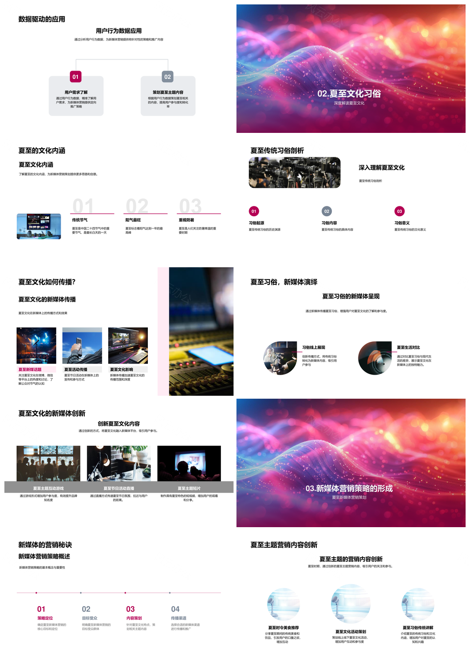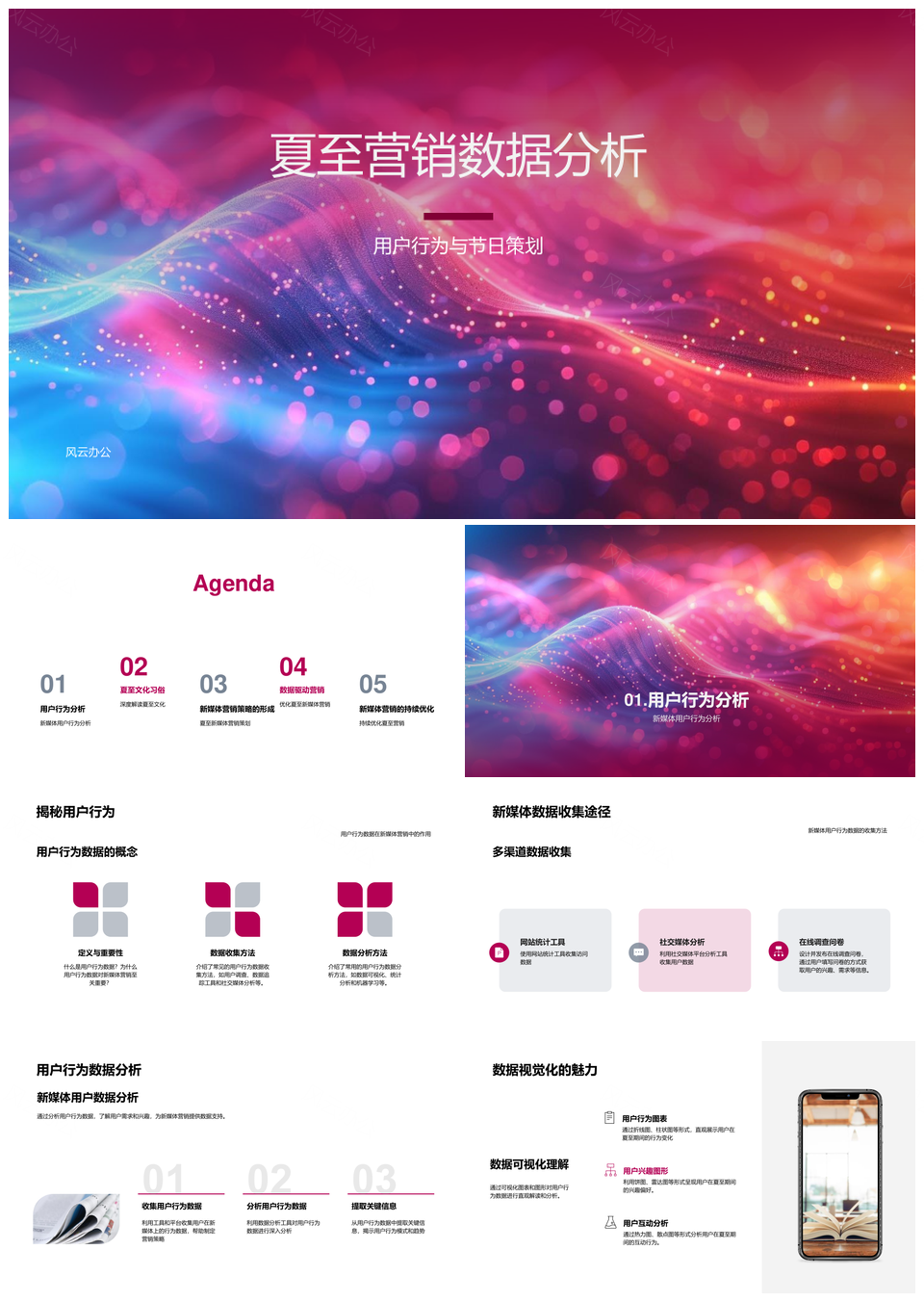 风云办公提供的夏至数据驱动新媒体营销用户行为分析PPT模板,下载格式为pptx,一共33页,作品中文字及图均可以修改和编辑,图片更改请在作品中右键图片并更换,文字修改请直接点击文字进行修改。