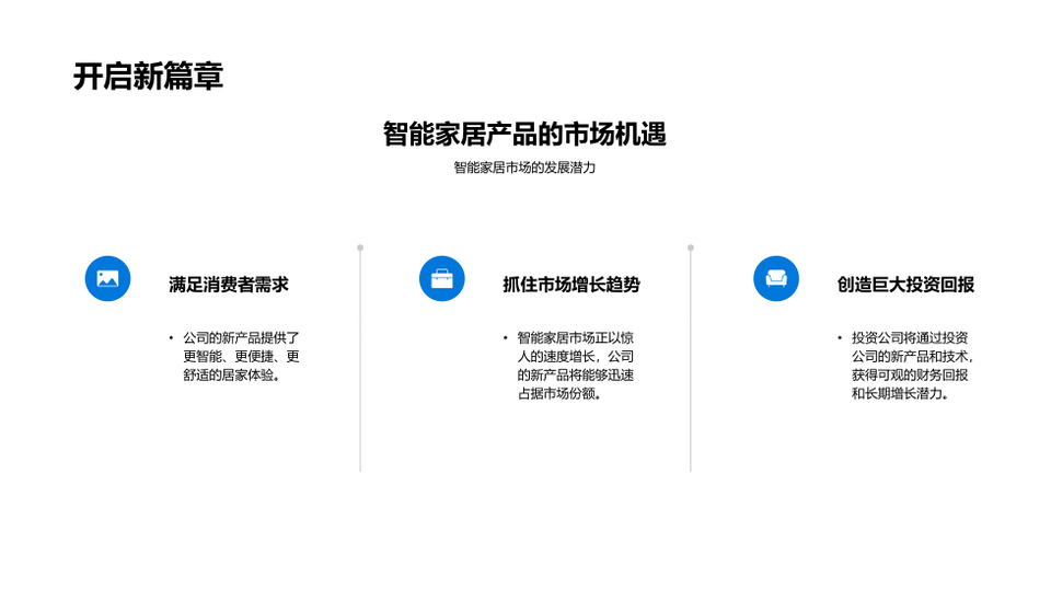 这是一张智能家居新品创新技术融资竞品体验设计PPT模板,包含智能家居、新品、创新技术、融资、竞品、体验设计等主题内容,也可用作智能家居新品创新技术融资、新品创新技术融资竞品、创新技术融资竞品体验设计、智能家居新品创新技术、新品创新技术融资、创新技术融资竞品、融资竞品体验设计、智能家居新品、新品创新技术、创新技术融资、融资竞品、竞品体验设计、智能家居创新技术、智能家居体验设计、创新技术体验设计等PPT场景使用。 风云办公提供的智能家居新品创新技术融资竞品体验设计PPT模板,下载格式为pptx,一共29页,作品中文字及图均可以修改和编辑,图片更改请在作品中右键图片并更换,文字修改请直接点击文字进行修改。