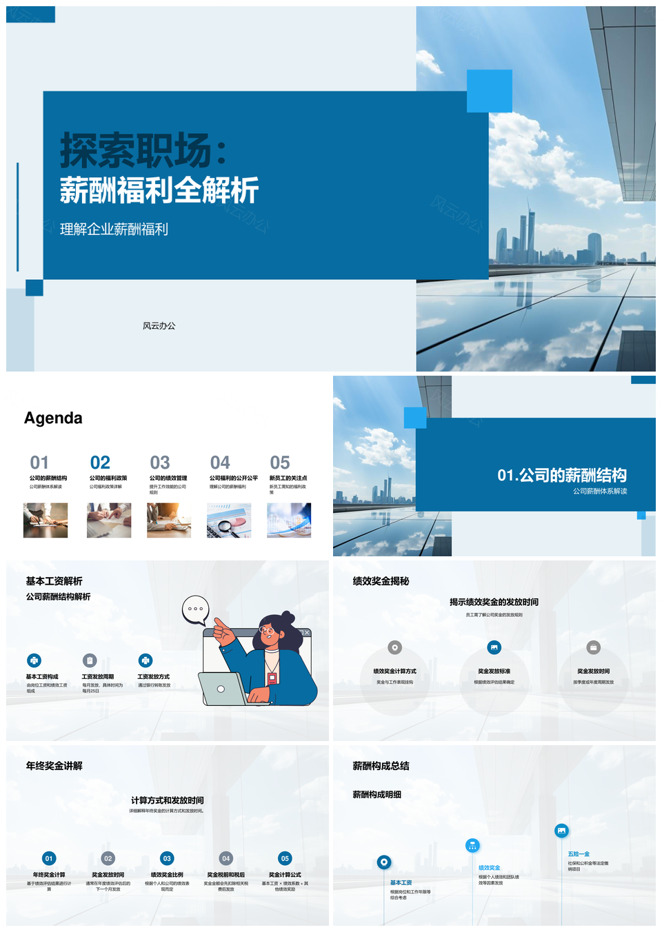 风云办公提供的职场薪酬福利政策与员工关怀详解PPT模板,下载格式为pptx,一共25页,作品中文字及图均可以修改和编辑,图片更改请在作品中右键图片并更换,文字修改请直接点击文字进行修改。