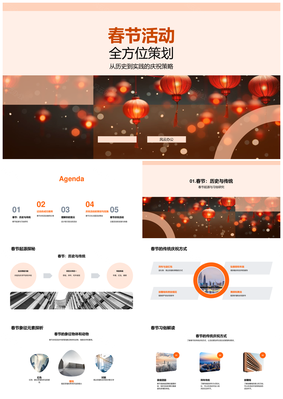 春节庆祝策略习俗历史传统灯笼实践全方位策划PPT模板推荐