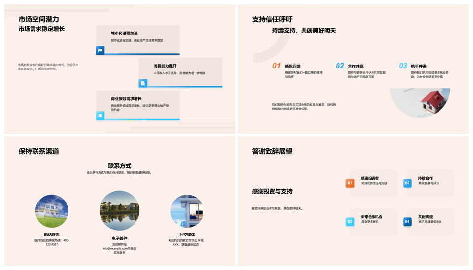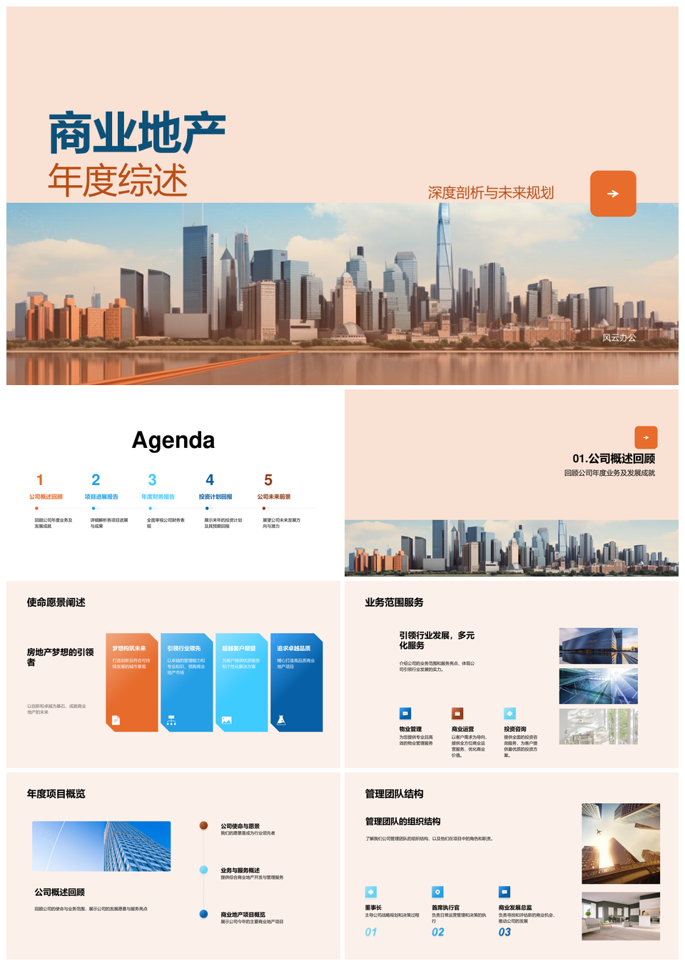 这是一张商业地产年度规划进展投资回报风控市场动向PPT模板,包含商业地产、年度规划、进展、投资回报、风控、市场动向等主题内容,也可用作商业地产年度规划进展投资回报、年度规划进展投资回报风控、进展投资回报风控市场动向、商业地产年度规划投资回报风控、商业地产投资回报风控市场动向、年度规划投资回报风控市场动向、商业地产年度规划投资回报、商业地产年度规划进展、年度规划进展投资回报、进展投资回报风控、投资回报风控市场动向、商业地产年度规划、年度规划进展、进展投资回报、投资回报风控等PPT场景使用。 风云办公提供的商业地产年度规划进展投资回报风控市场动向PPT模板,下载格式为pptx,一共32页,作品中文字及图均可以修改和编辑,图片更改请在作品中右键图片并更换,文字修改请直接点击文字进行修改。