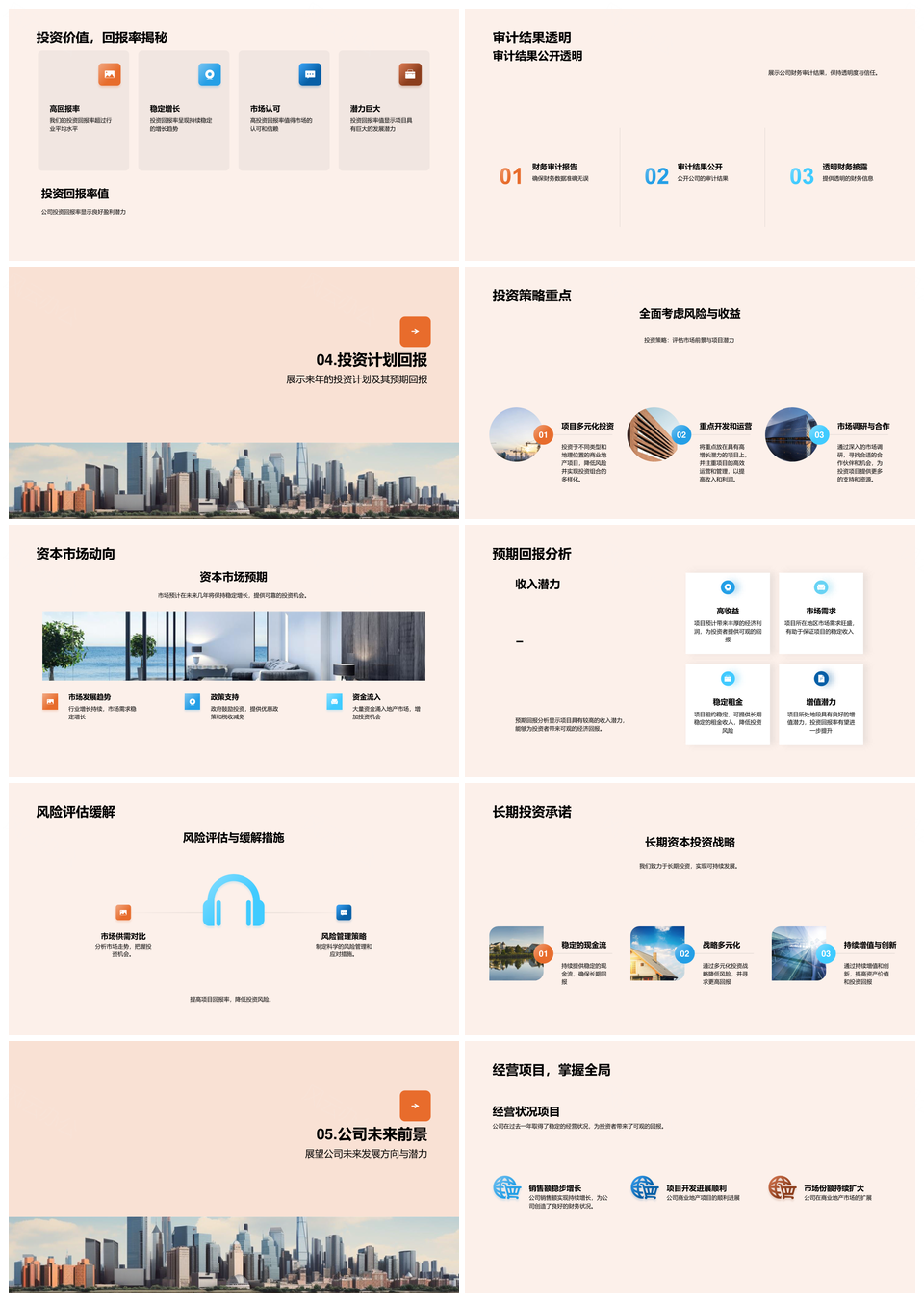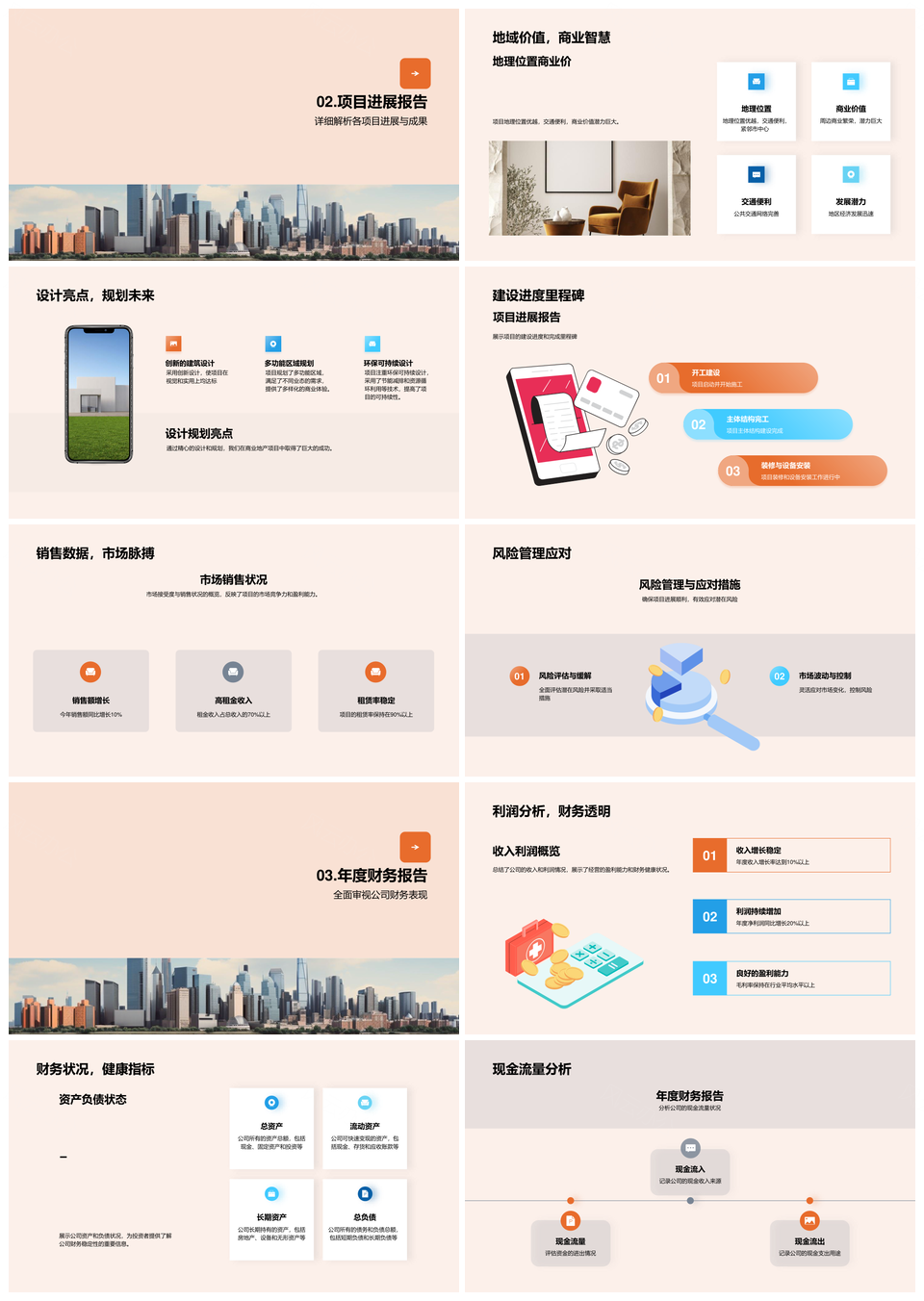 房产年报财务战略市场投资回报盈利风控经营PPT模板