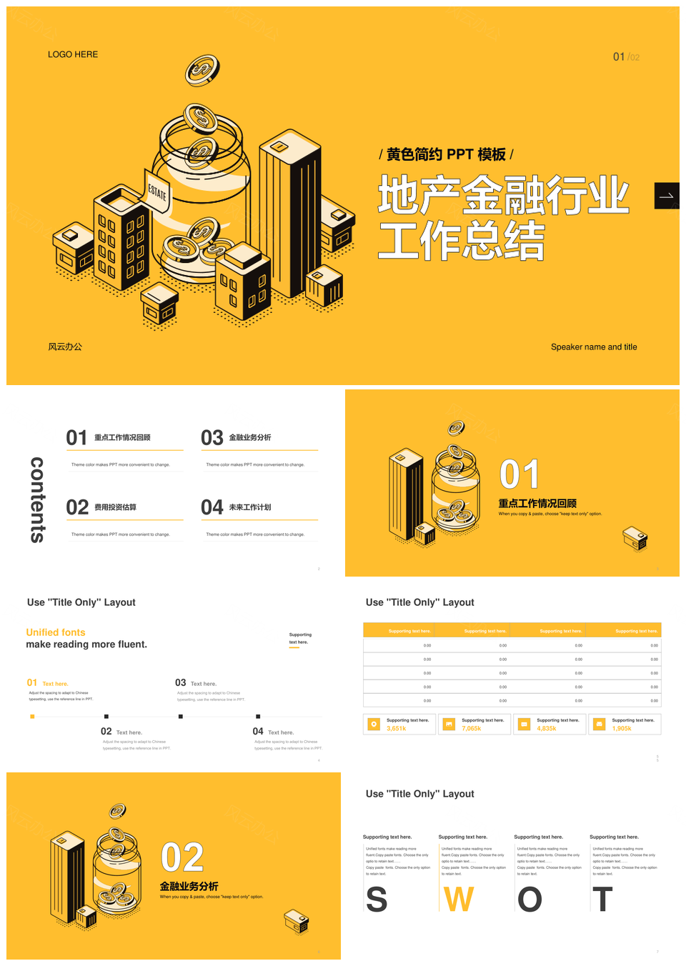 黄色简约大气理财投资保险金融行业工作计划总结报告PPT模板