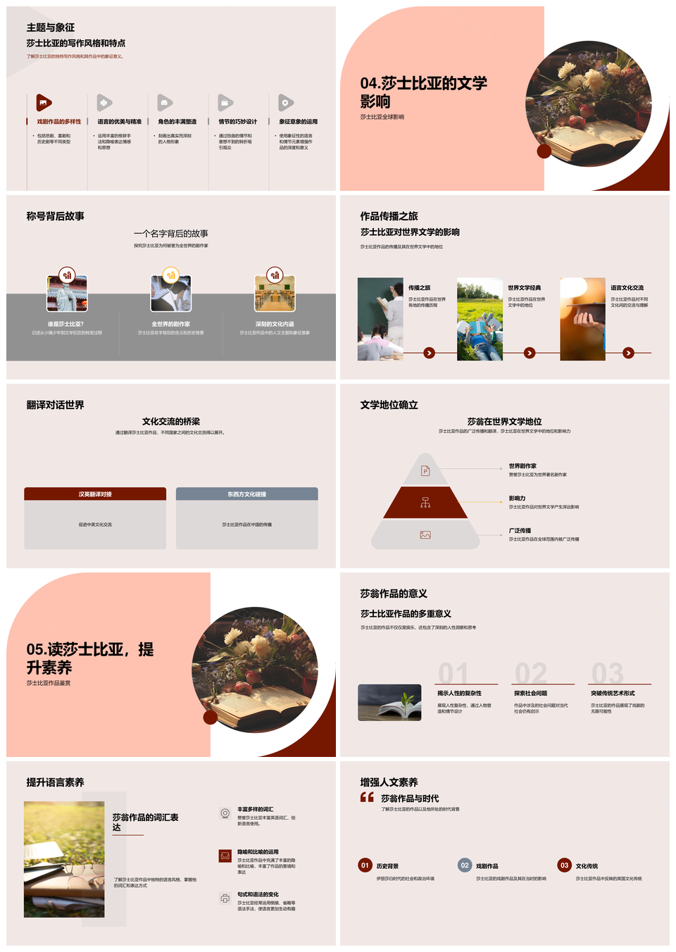 莎士比亚戏剧诗歌创作影响与语言艺术遗产PPT模板