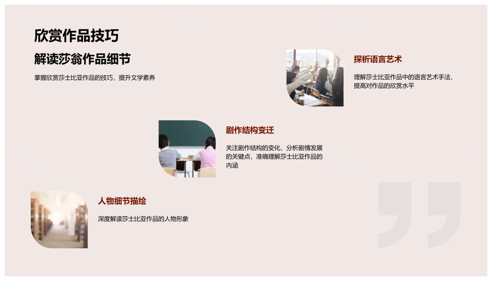 这是一张莎士比亚戏剧诗歌创作影响与语言艺术遗产PPT模板,包含莎士比亚、戏剧、诗歌、创作、影响、语言、艺术、遗产等主题内容,也可用作莎士比亚戏剧诗歌创作、戏剧诗歌创作影响、诗歌创作影响语言、创作影响语言艺术、影响语言艺术遗产、莎士比亚戏剧诗歌、戏剧诗歌创作、诗歌创作影响、创作影响语言、影响语言艺术、语言艺术遗产、莎士比亚戏剧、戏剧诗歌、诗歌创作、创作影响等PPT场景使用。 风云办公提供的莎士比亚戏剧诗歌创作影响与语言艺术遗产PPT模板,下载格式为pptx,一共29页,作品中文字及图均可以修改和编辑,图片更改请在作品中右键图片并更换,文字修改请直接点击文字进行修改。
