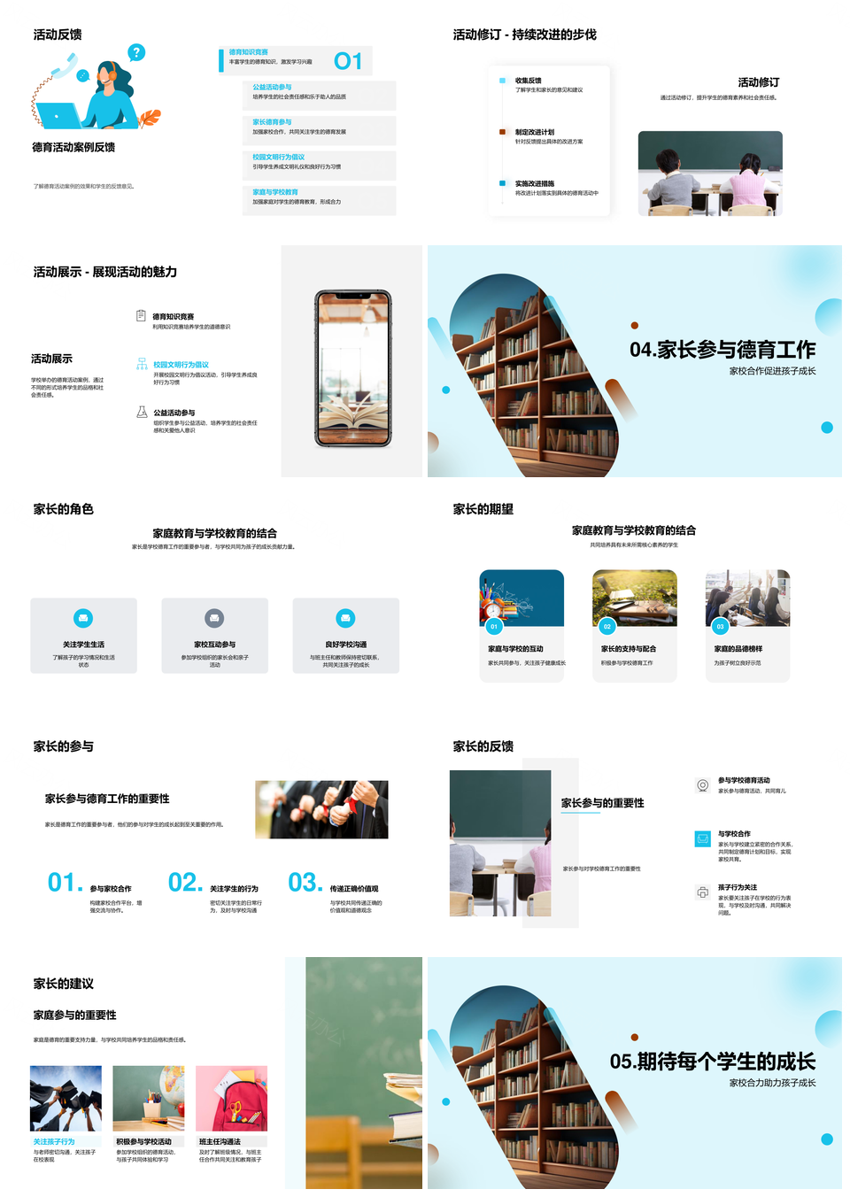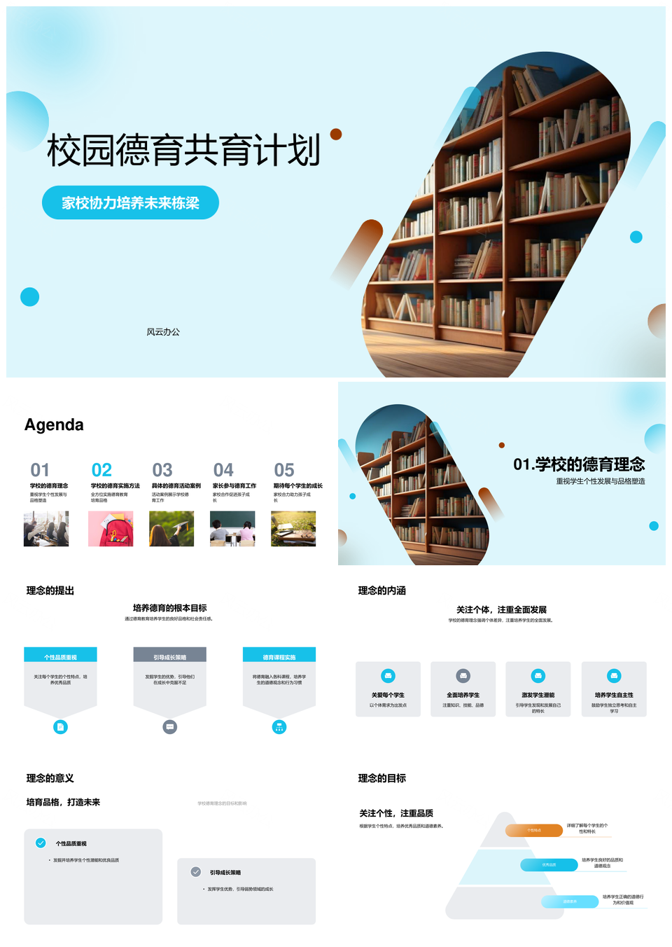 风云办公提供的家校共育德育课程活动促品格个性发展PPT模板,下载格式为pptx,一共33页,作品中文字及图均可以修改和编辑,图片更改请在作品中右键图片并更换,文字修改请直接点击文字进行修改。