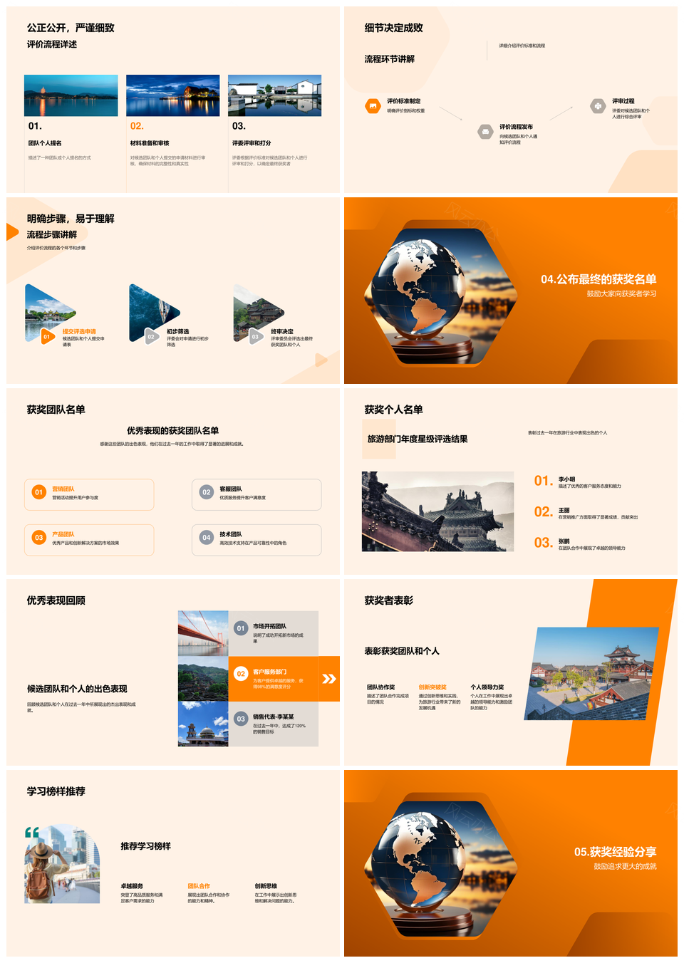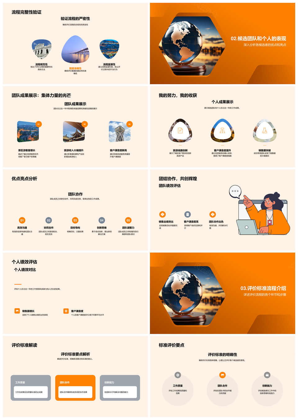 旅游业绩星光大赏团队个人成果经验奖杯评价PPT模板推荐