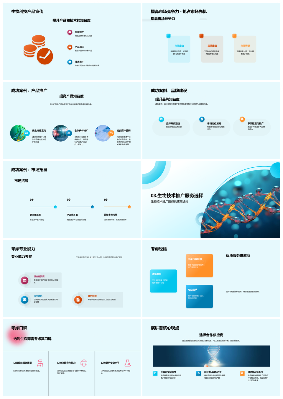 这是一张生物科技公司推广成功案例驱动市场拓展PPT模板,包含生物科技公司、推广、成功、案例、驱动、市场、拓展等主题内容,也可用作生物科技公司推广成功案例、推广成功案例驱动市场拓展、生物科技公司推广、公司推广成功案例驱动、公司推广成功案例、推广成功案例驱动、成功案例驱动市场拓展、生物科技公司、公司推广、推广成功案例、成功案例驱动、驱动市场拓展等PPT场景使用。 风云办公提供的生物科技公司推广成功案例驱动市场拓展PPT模板,下载格式为pptx,一共26页,作品中文字及图均可以修改和编辑,图片更改请在作品中右键图片并更换,文字修改请直接点击文字进行修改。