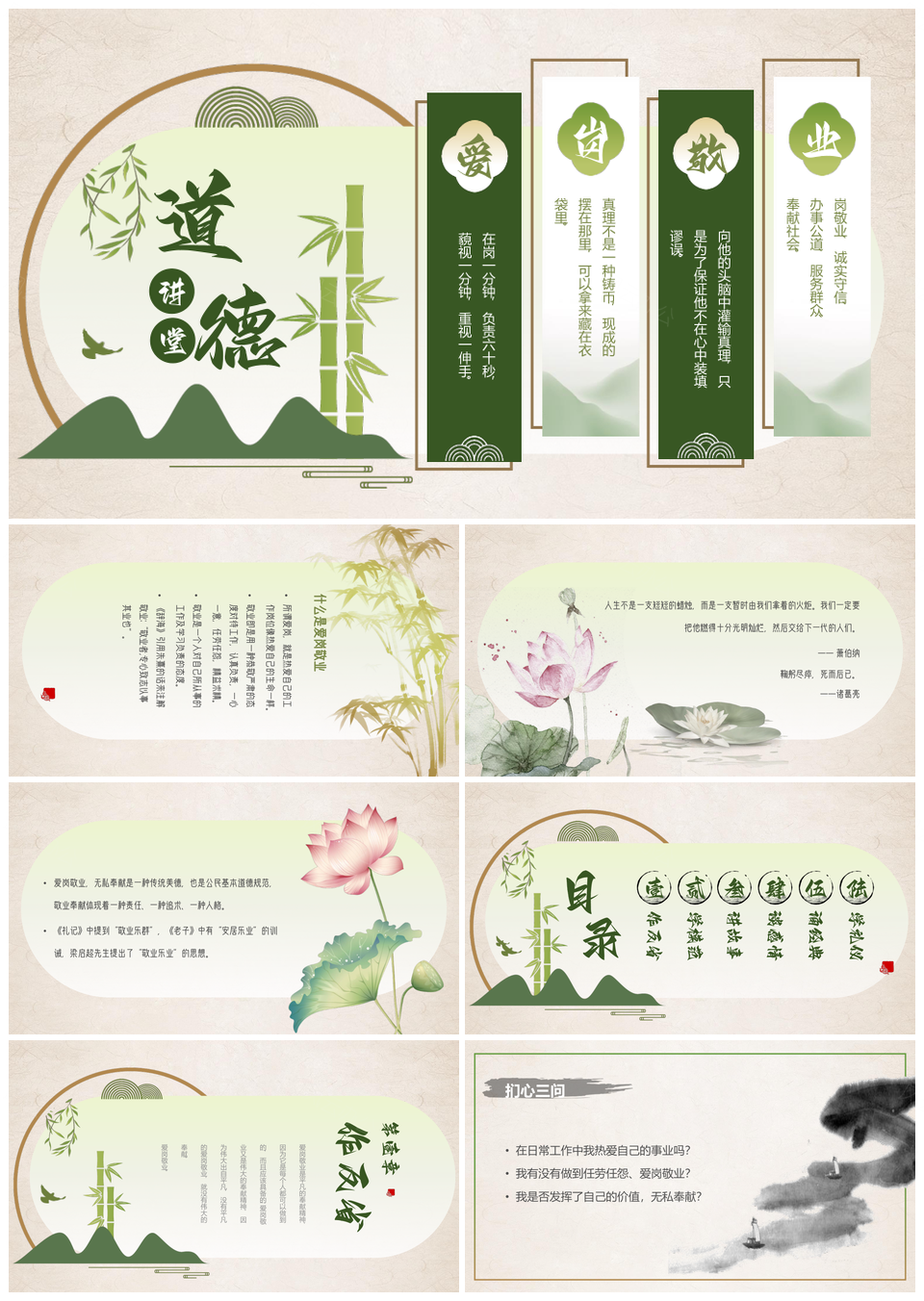 这是一张中国风水墨山水爱岗敬业道德讲堂培训PPT模板,包含风水墨、山水、爱岗敬业、道德讲堂、培训等主题内容,也可用作中国风水墨山喜爱岗敬业道德讲堂、水墨山喜爱岗敬业道德讲堂培训、中国风爱岗敬业道德讲堂培训、中国风道德讲堂培训、中国风水墨山水、水墨山喜爱岗敬业、爱岗敬业道德讲堂、道德讲堂培训、中国风培训、水墨山水培训、水墨山水道德讲堂、爱岗敬业培训、水墨山喜爱岗敬业道德讲堂、中国风爱岗敬业道德讲堂、中国风爱岗敬业培训等PPT场景使用。