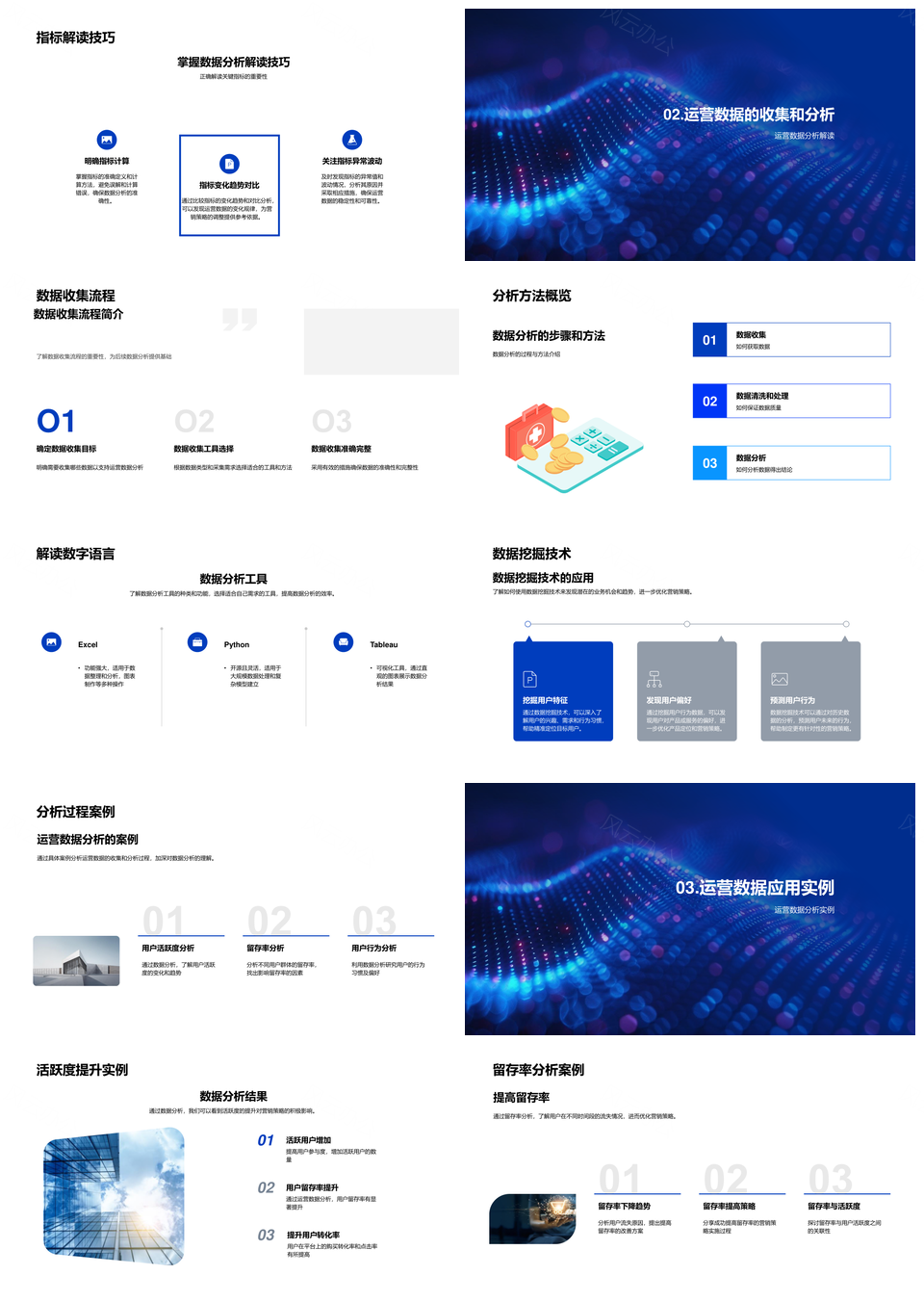 运营数据分析营销策略用户行为可视化留存关键指标收集PPT模板推荐