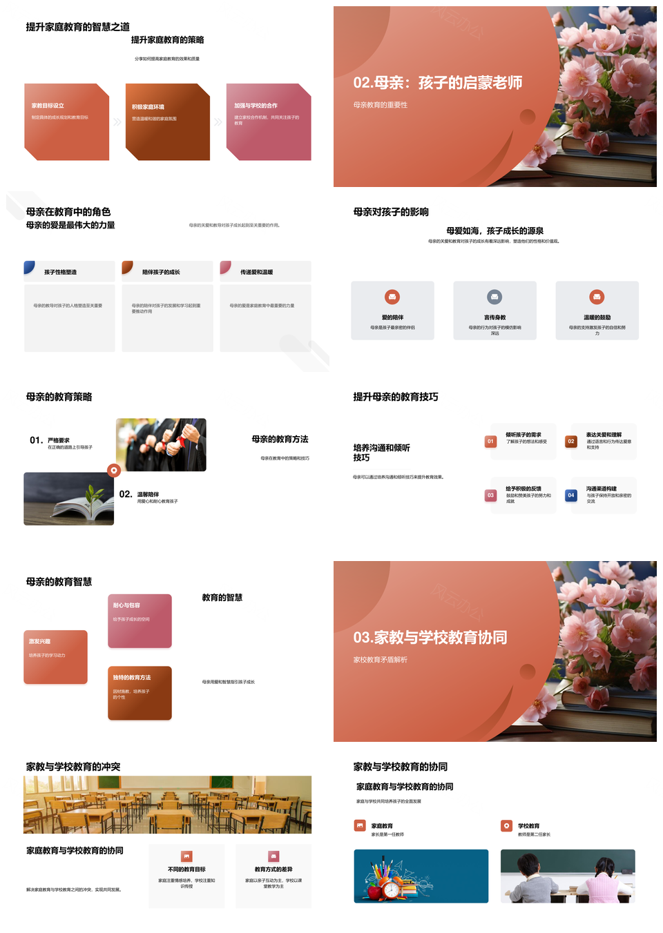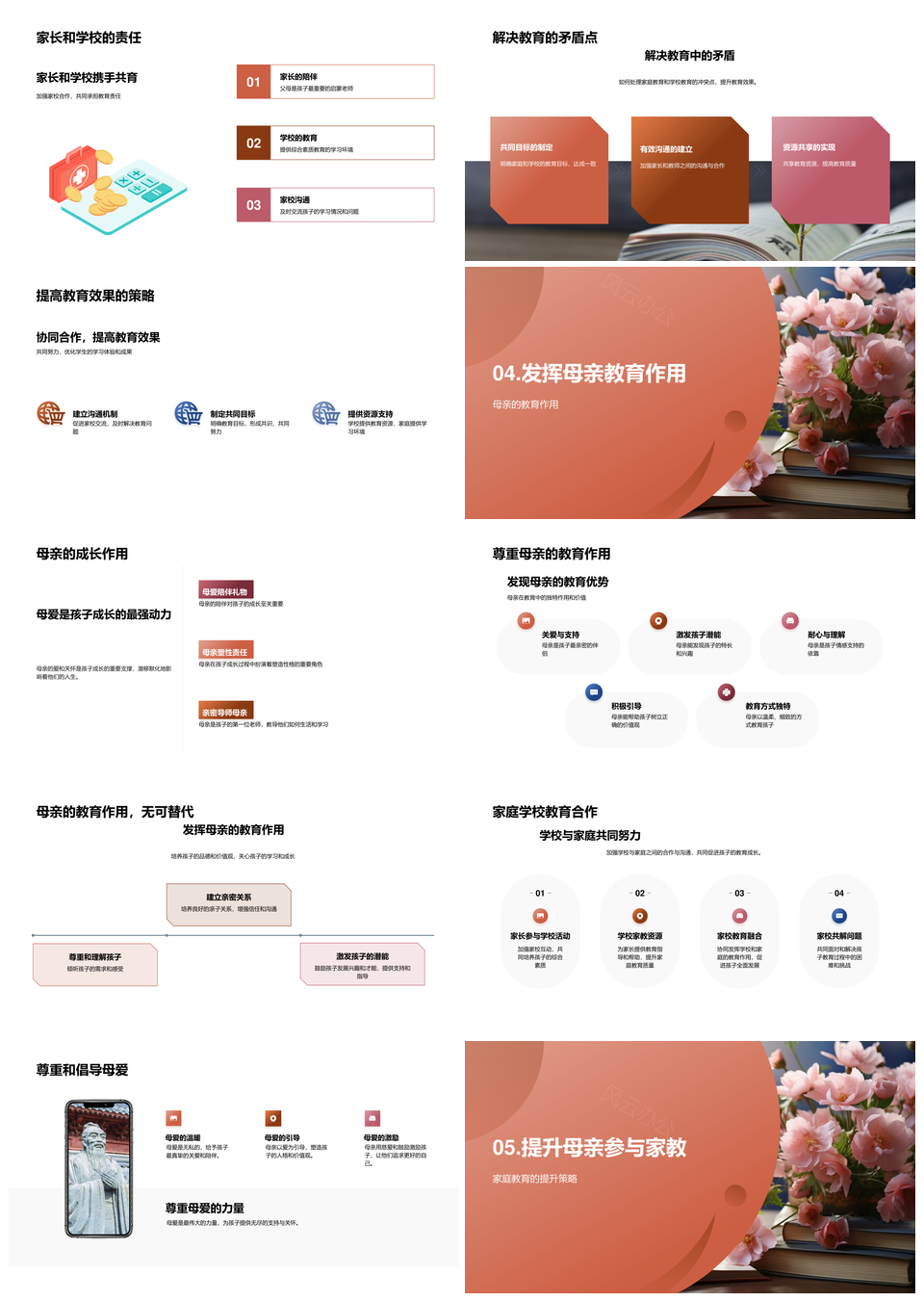 风云办公提供的母亲家庭教育实践影响孩子成长PPT模板,下载格式为pptx,一共33页,作品中文字及图均可以修改和编辑,图片更改请在作品中右键图片并更换,文字修改请直接点击文字进行修改。