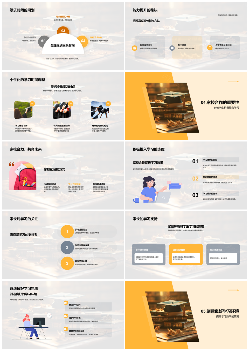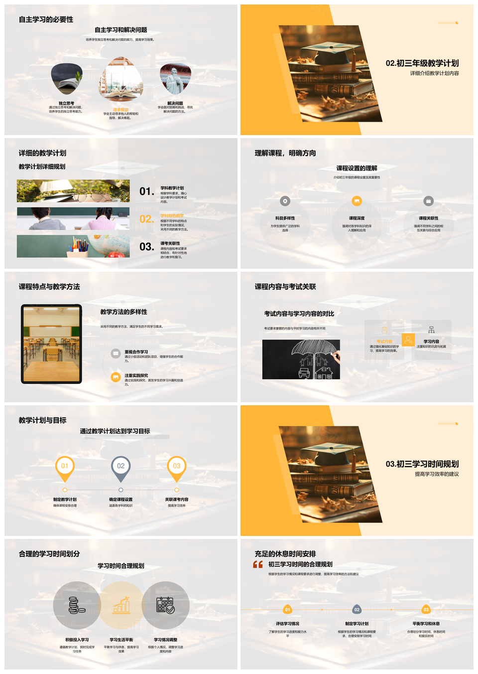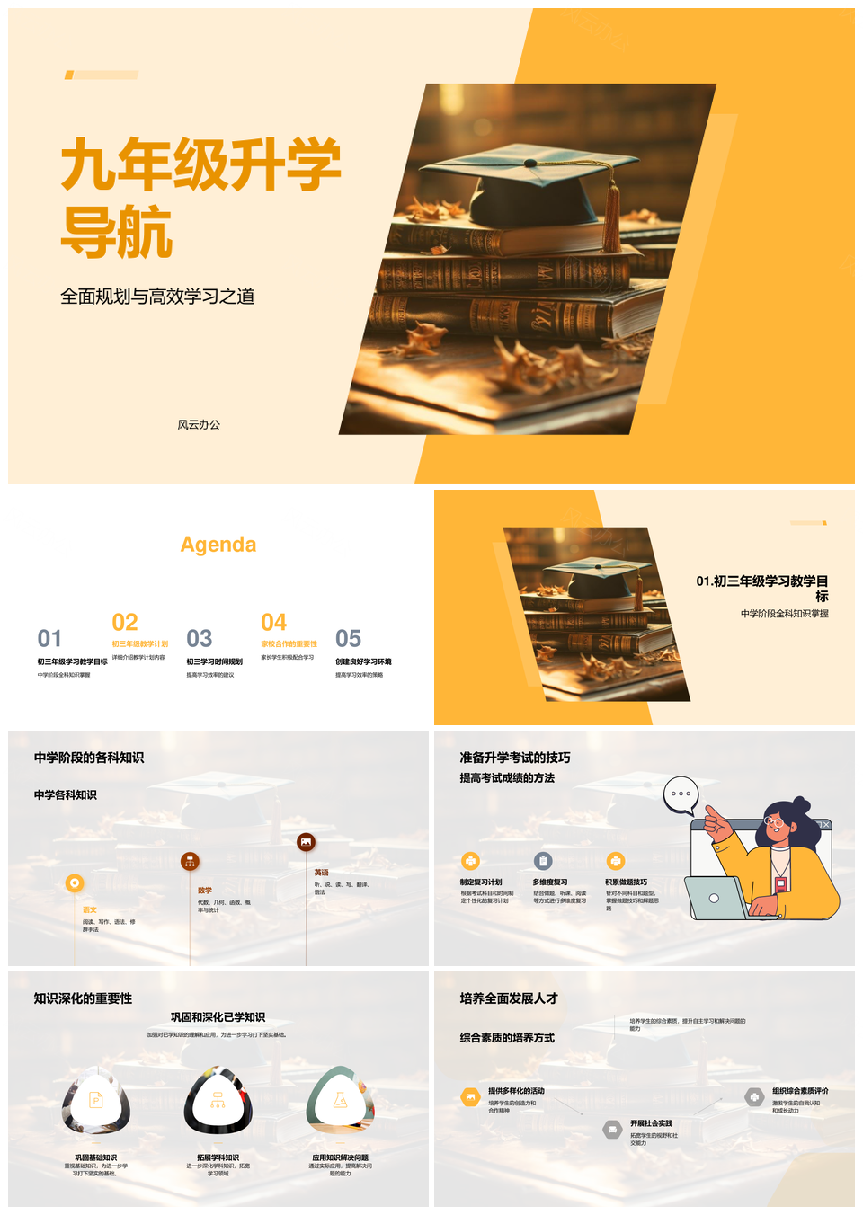 这是一张九年级升学全面规划高效学习家校共育导航PPT模板,包含九年级、升学、全面规划、高效学习、家校共育、导航等主题内容,也可用作九年级升学全面规划高效学习、升学全面规划高效学习家校共育、全面规划高效学习家校共育导航、九年级升学高效学习家校共育、九年级升学全面规划、升学全面规划高效学习、全面规划高效学习家校共育、九年级升学高效学习、九年级全面规划高效学习、升学高效学习家校共育、九年级升学、升学全面规划、全面规划高效学习、高效学习家校共育、九年级高效学习等PPT场景使用。 风云办公提供的九年级升学全面规划高效学习家校共育导航PPT模板,下载格式为pptx,一共33页,作品中文字及图均可以修改和编辑,图片更改请在作品中右键图片并更换,文字修改请直接点击文字进行修改。