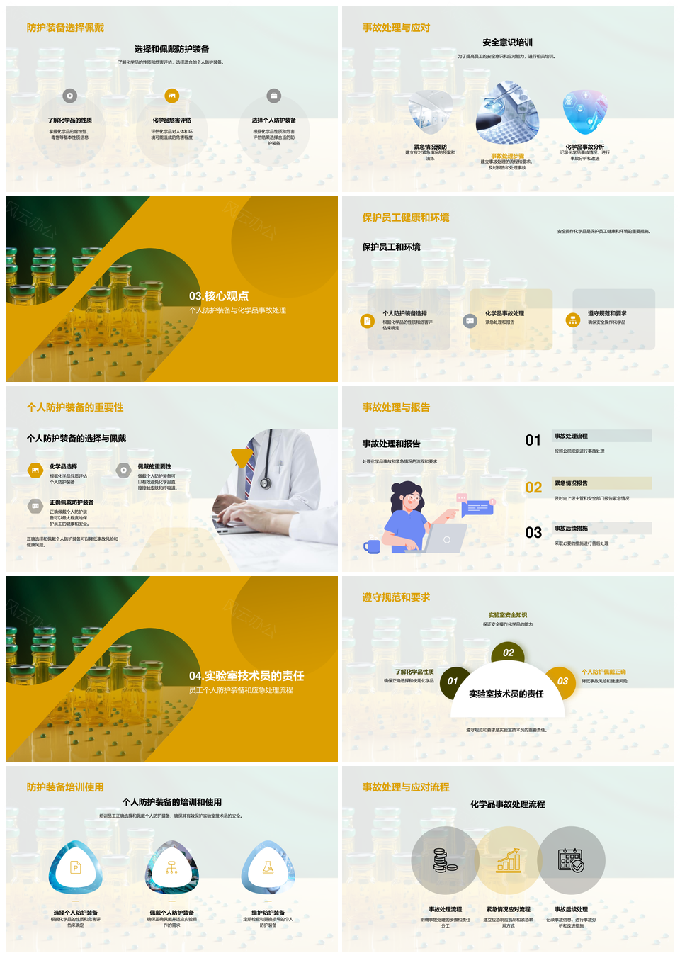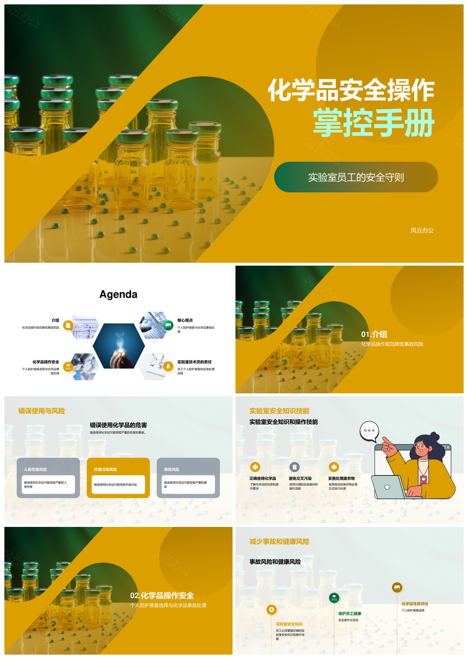 这是一张化学品安全操作风险防控员工健康环境保护PPT模板,包含化学品、安全、操作、风险、防控、员工、健康、环境、保护等主题内容,也可用作化学品安全操作风险、安全操作风险防控、操作风险防控员工、风险防控员工健康、防控员工健康环境保护、化学品安全操作、安全操作风险、操作风险防控、风险防控员工、防控员工健康、员工健康环境保护、化学品安全、安全操作、操作风险、风险防控等PPT场景使用。 风云办公提供的化学品安全操作风险防控员工健康环境保护PPT模板,下载格式为pptx,一共18页,作品中文字及图均可以修改和编辑,图片更改请在作品中右键图片并更换,文字修改请直接点击文字进行修改。