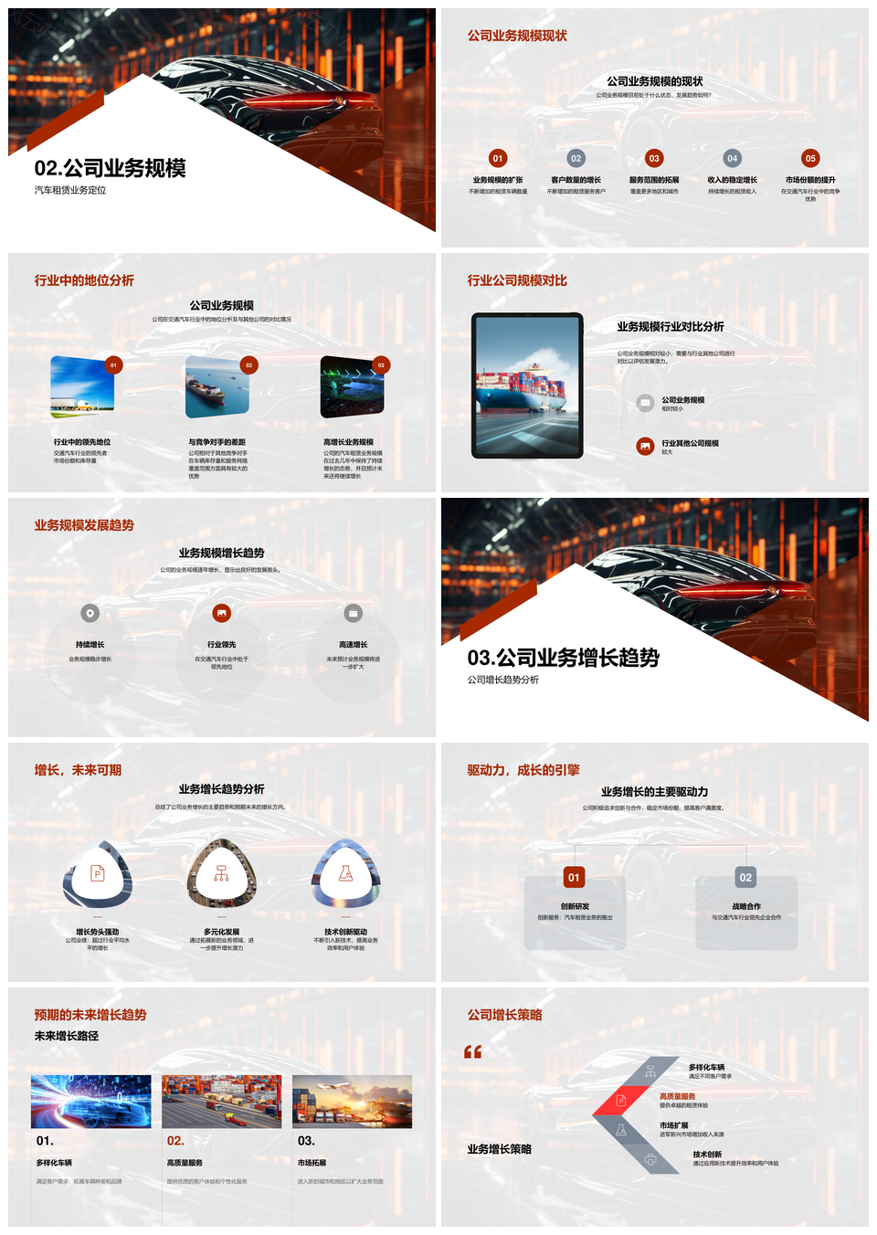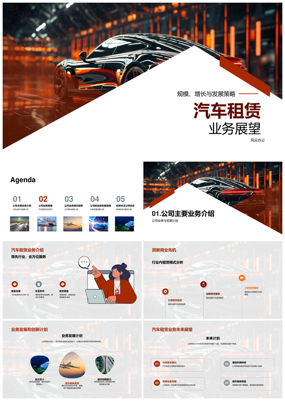 风云办公提供的汽车租赁业务规模与增长趋势分析PPT模板,下载格式为pptx,一共28页,作品中文字及图均可以修改和编辑,图片更改请在作品中右键图片并更换,文字修改请直接点击文字进行修改。