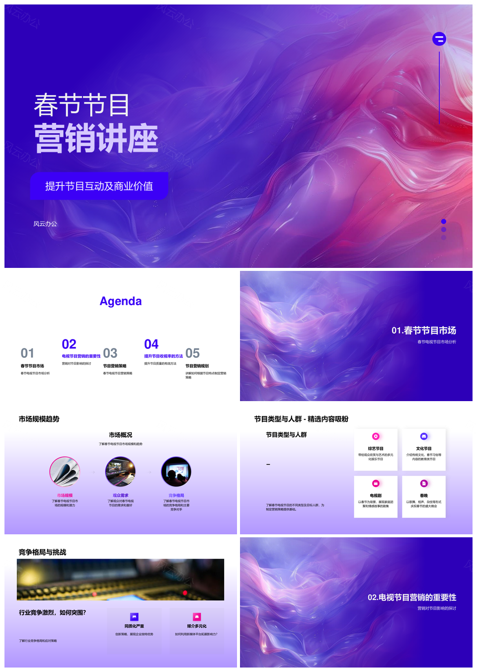 这是一张电视节目制作人春节营销策划趋势竞争分析PPT模板,包含电视节目制作人、春节、营销、策划、趋势、竞争、分析等主题内容,也可用作电视节目制作人春节营销策划、制作人春节营销策划趋势、春节营销策划趋势竞争分析、电视节目制作人春节、制作人春节营销策划、春节营销策划趋势、营销策划趋势竞争分析、电视节目制作人、制作人春节、春节营销策划、营销策划趋势、趋势竞争分析、电视节目春节、春节趋势、制作人趋势等PPT场景使用。 风云办公提供的电视节目制作人春节营销策划趋势竞争分析PPT模板,下载格式为pptx,一共23页,作品中文字及图均可以修改和编辑,图片更改请在作品中右键图片并更换,文字修改请直接点击文字进行修改。