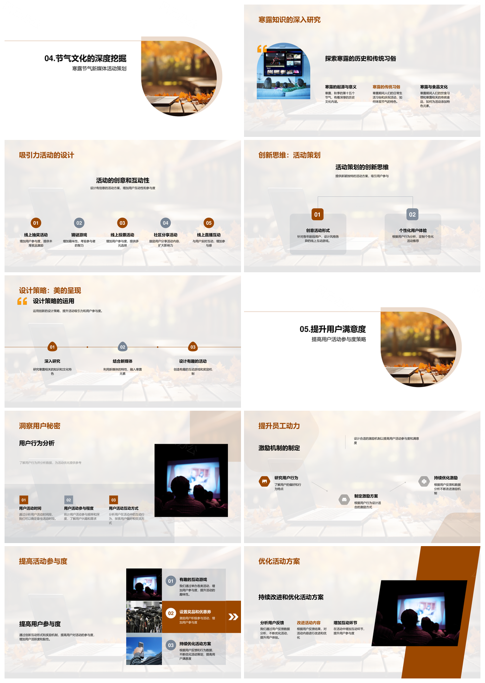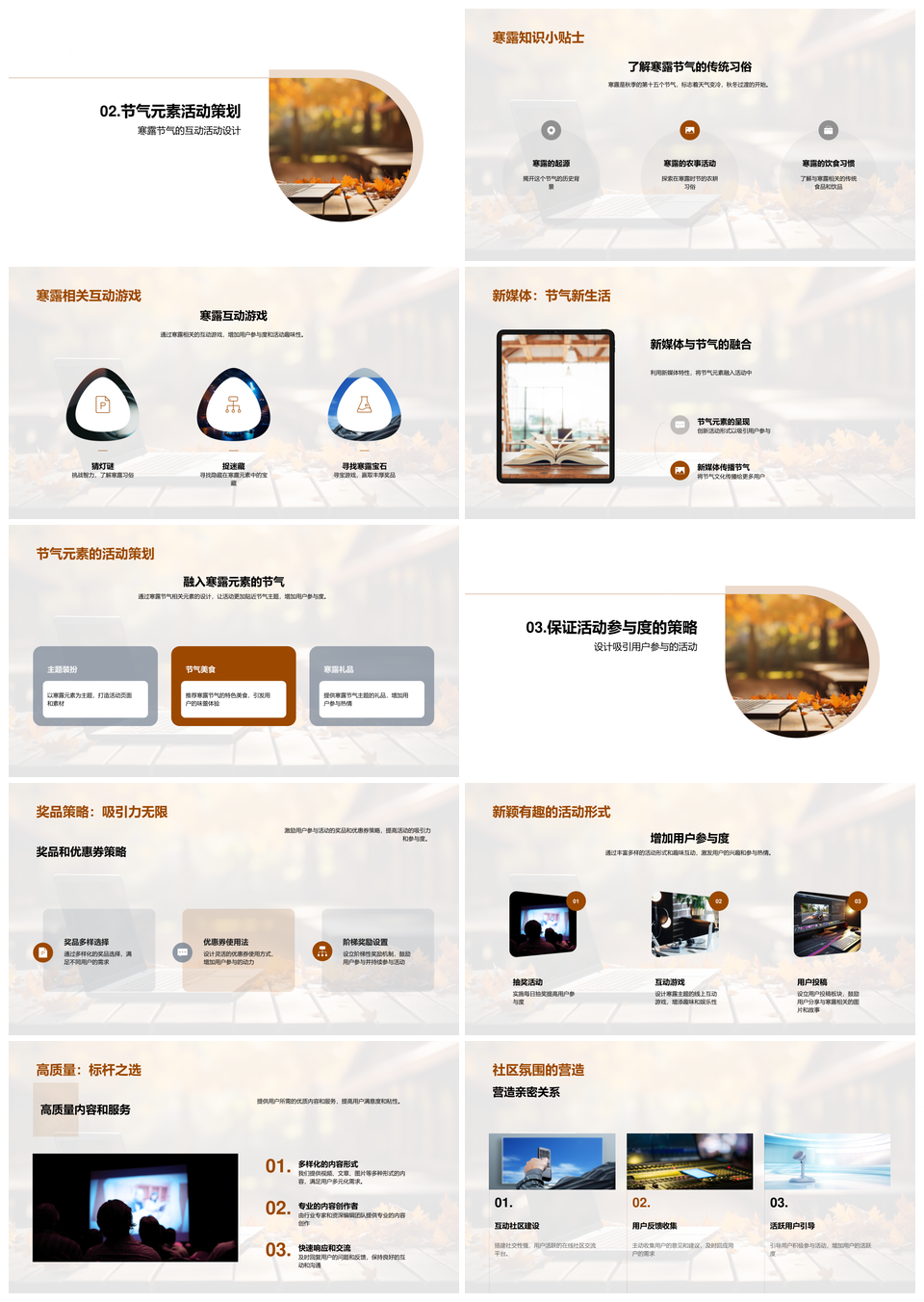 风云办公提供的寒露节气新媒体秋叶互动有奖活动PPT模板,下载格式为pptx,一共28页,作品中文字及图均可以修改和编辑,图片更改请在作品中右键图片并更换,文字修改请直接点击文字进行修改。