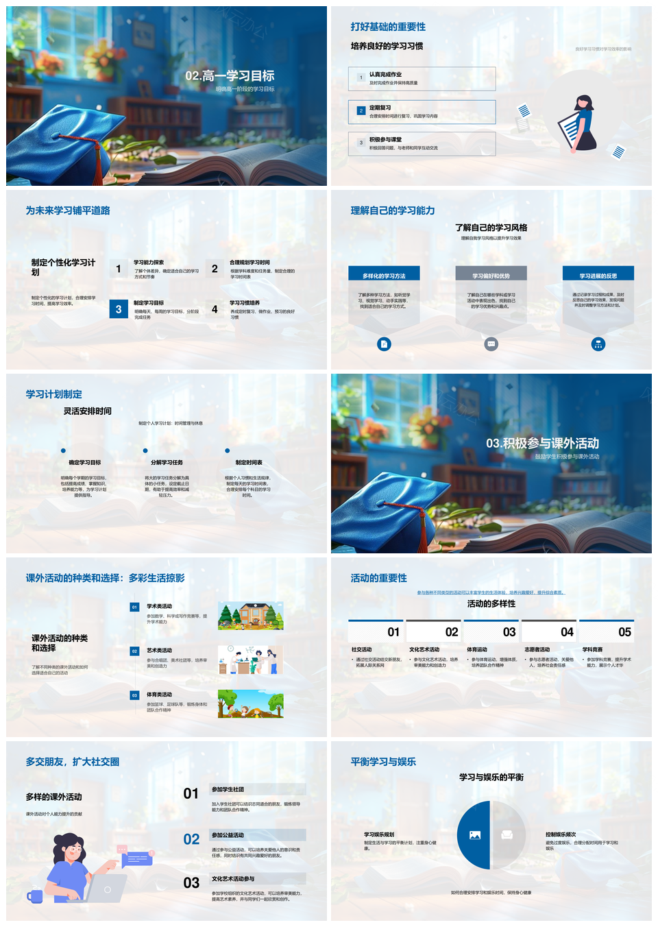 高中学习导航学科基础计划活动自我管理PPT模板推荐