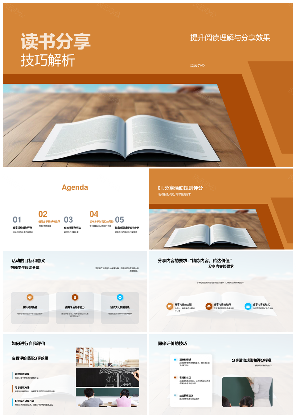 风云办公提供的教师指导五年级阅读自评互评荐书活动PPT模板,下载格式为pptx,一共29页,作品中文字及图均可以修改和编辑,图片更改请在作品中右键图片并更换,文字修改请直接点击文字进行修改。
