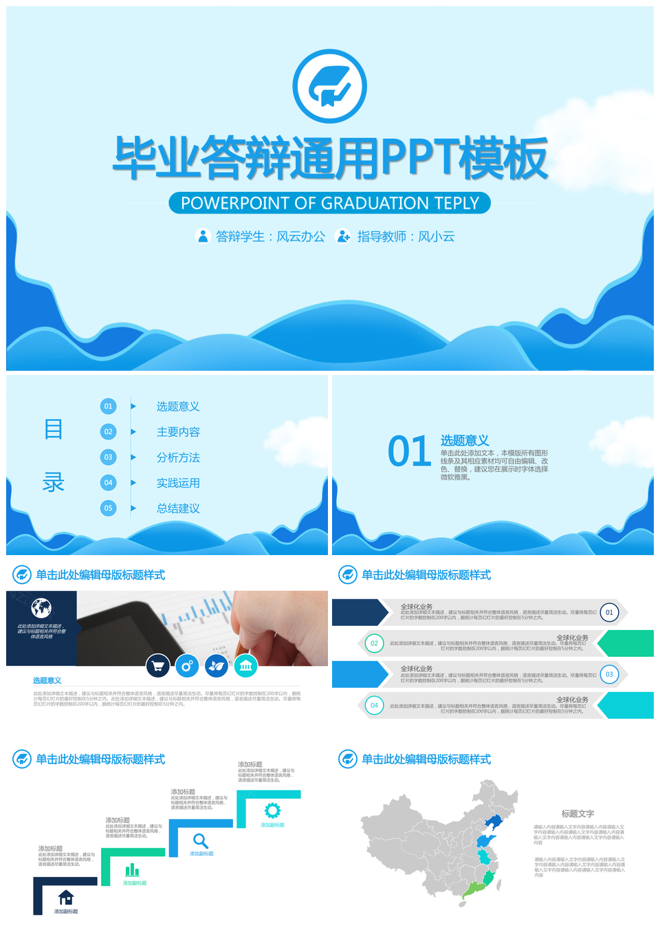 蓝色简约风毕业答辩通用PPT模板