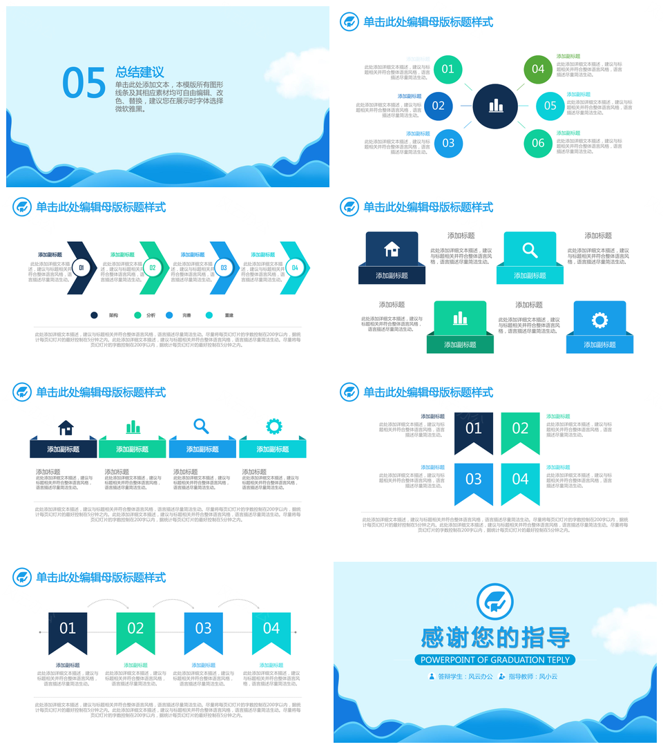 极简风蓝色简约风毕业答辩PPT模板