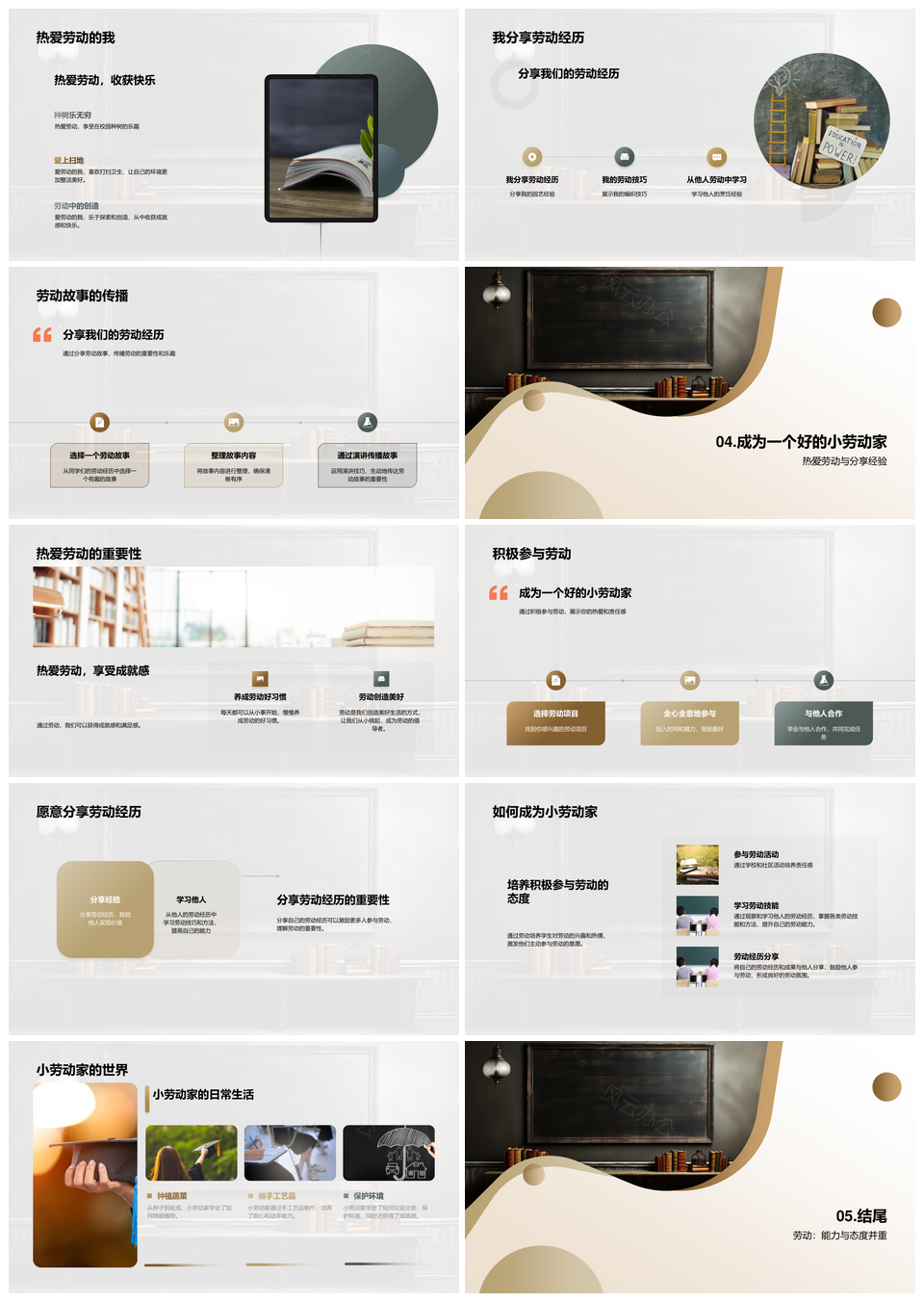 风云办公提供的劳动小达人分享劳动教育经验技巧乐趣PPT模板,下载格式为pptx,一共33页,作品中文字及图均可以修改和编辑,图片更改请在作品中右键图片并更换,文字修改请直接点击文字进行修改。