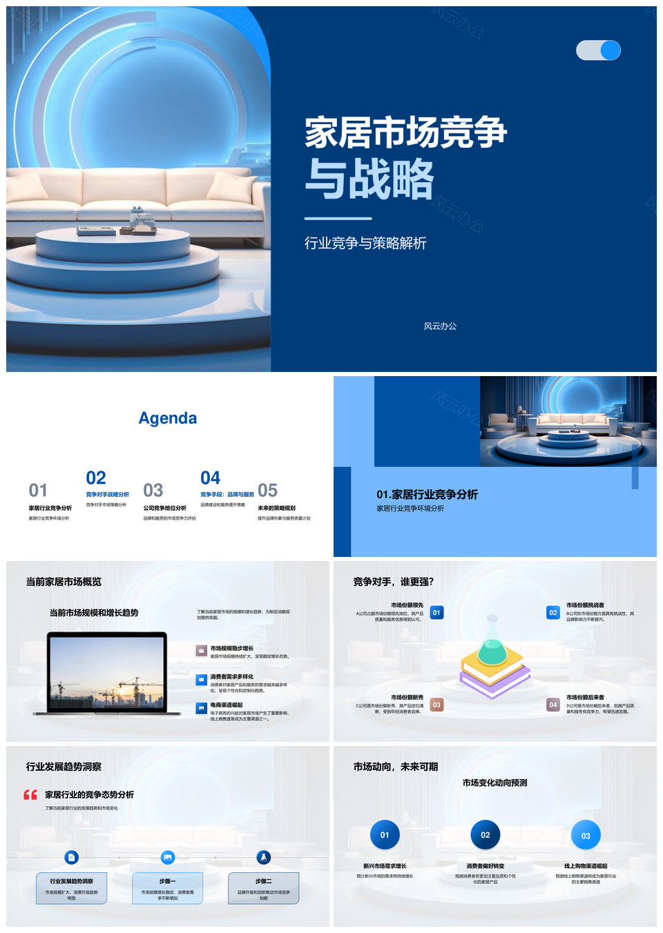 风云办公提供的家居市场竞争战略行业趋势分析PPT模板,下载格式为pptx,一共33页,作品中文字及图均可以修改和编辑,图片更改请在作品中右键图片并更换,文字修改请直接点击文字进行修改。