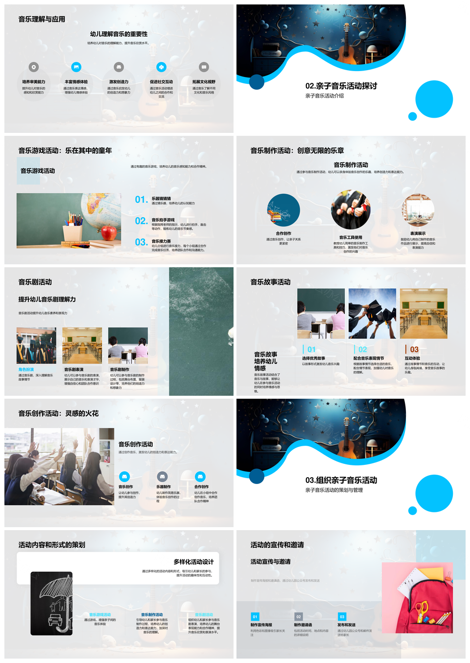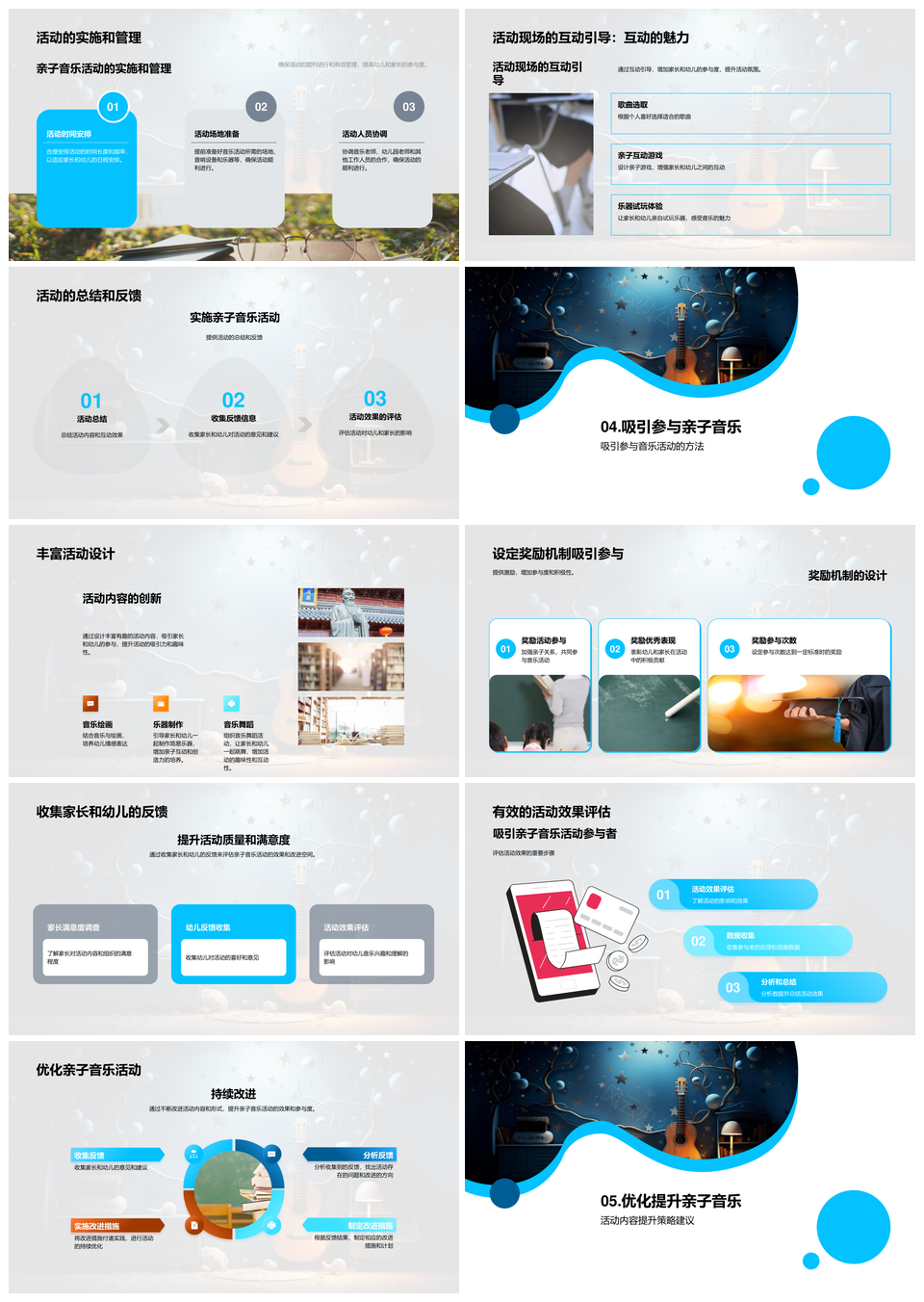 这是一张亲子音乐教育活动家长参与游戏制作剧实施管理奖励乐符PPT模板,包含亲子、音乐教育、活动、家长、参与、游戏制作、实施、管理、奖励、乐符等主题内容,也可用作亲子音乐教育活动、家长参与游戏制作、音乐教育活动家长、亲子音乐教育、教育教育活动家长、家长参与游戏、亲子音乐、音乐教育、教育活动、活动家长参与、家长参与、参与游戏、游戏制作、制作实施、实施管理等PPT场景使用。 风云办公提供的亲子音乐教育活动家长参与游戏制作剧实施管理奖励乐符PPT模板,下载格式为pptx,一共33页,作品中文字及图均可以修改和编辑,图片更改请在作品中右键图片并更换,文字修改请直接点击文字进行修改。
