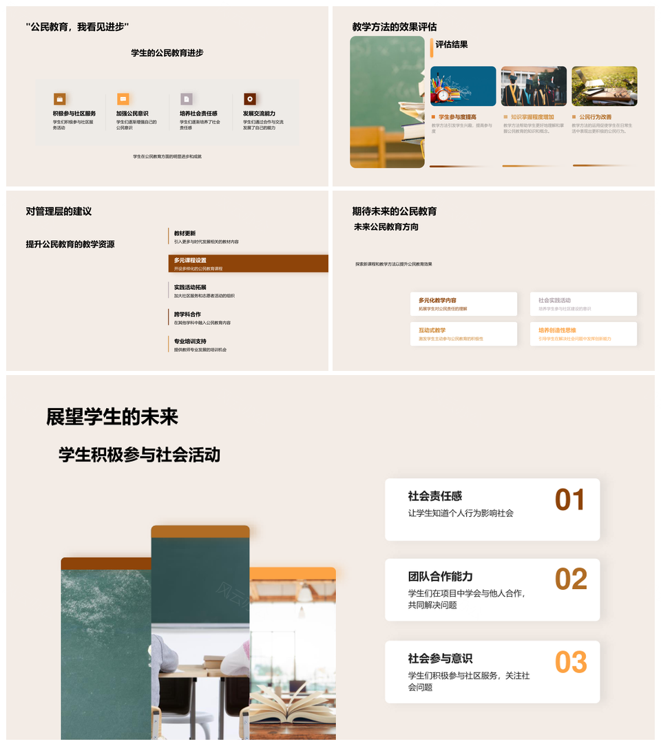 四年级公民教育责任教学策略社区服务实践PPT模板推荐
