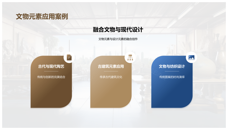 这是一张文物修复艺术设计历史元素展示实践PPT模板,包含文物修复、艺术设计、历史元素、展示实践等主题内容,也可用作文物修复艺术设计历史元素展示实践、文物修复艺术设计历史元素、艺术设计历史元素展示实践、文物修复历史元素展示实践、文物修复艺术设计展示实践、艺术设计历史元素展示实践、文物修复艺术设计历史元素、历史元素展示实践、文物修复艺术设计、艺术设计历史元素、历史元素展示实践、文物修复展示实践、艺术设计展示实践、文物修复历史元素、艺术设计历史元素等PPT场景使用。