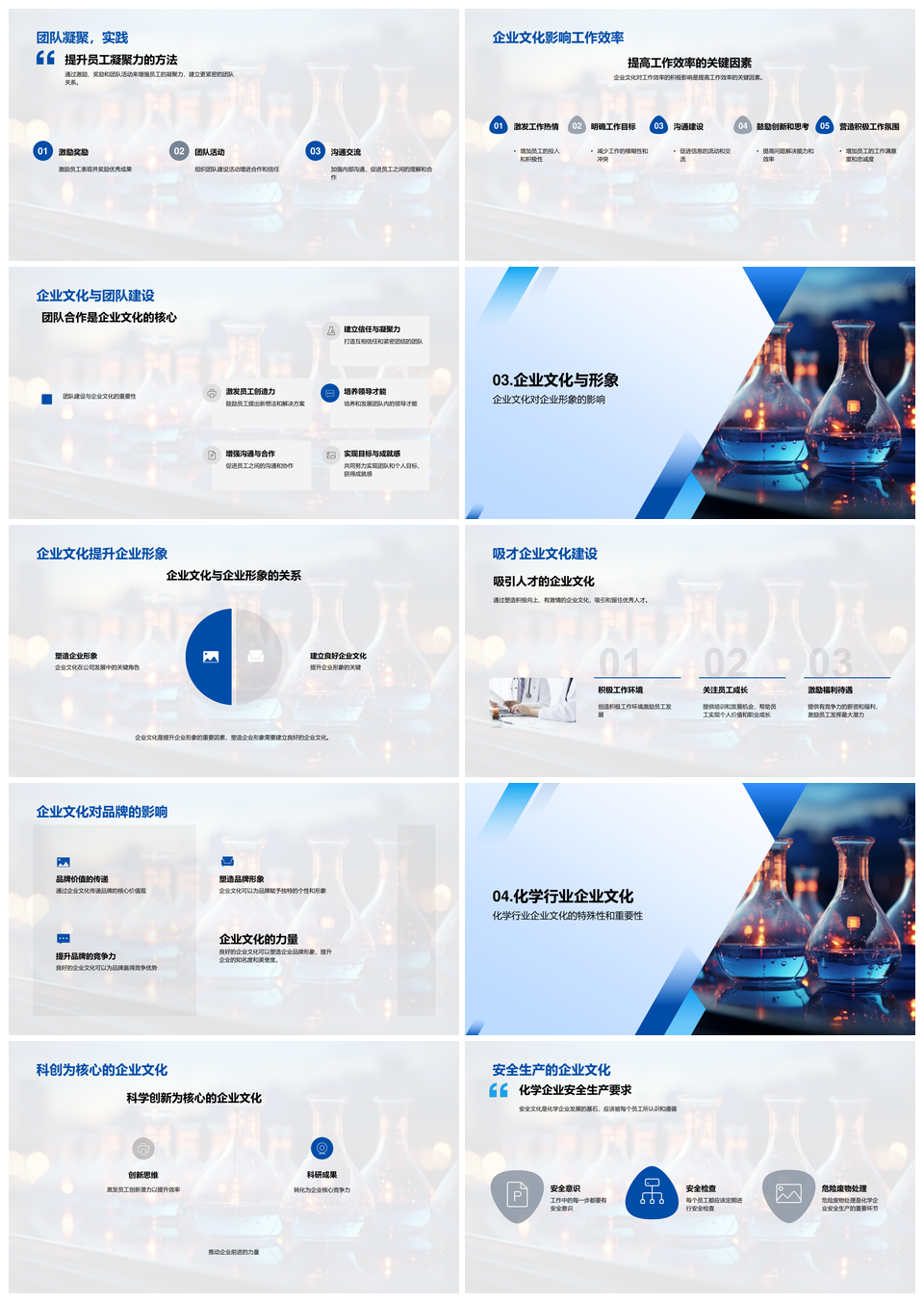 风云办公提供的化学企业文化驱动团队创新与品牌提升PPT模板,下载格式为pptx,一共23页,作品中文字及图均可以修改和编辑,图片更改请在作品中右键图片并更换,文字修改请直接点击文字进行修改。