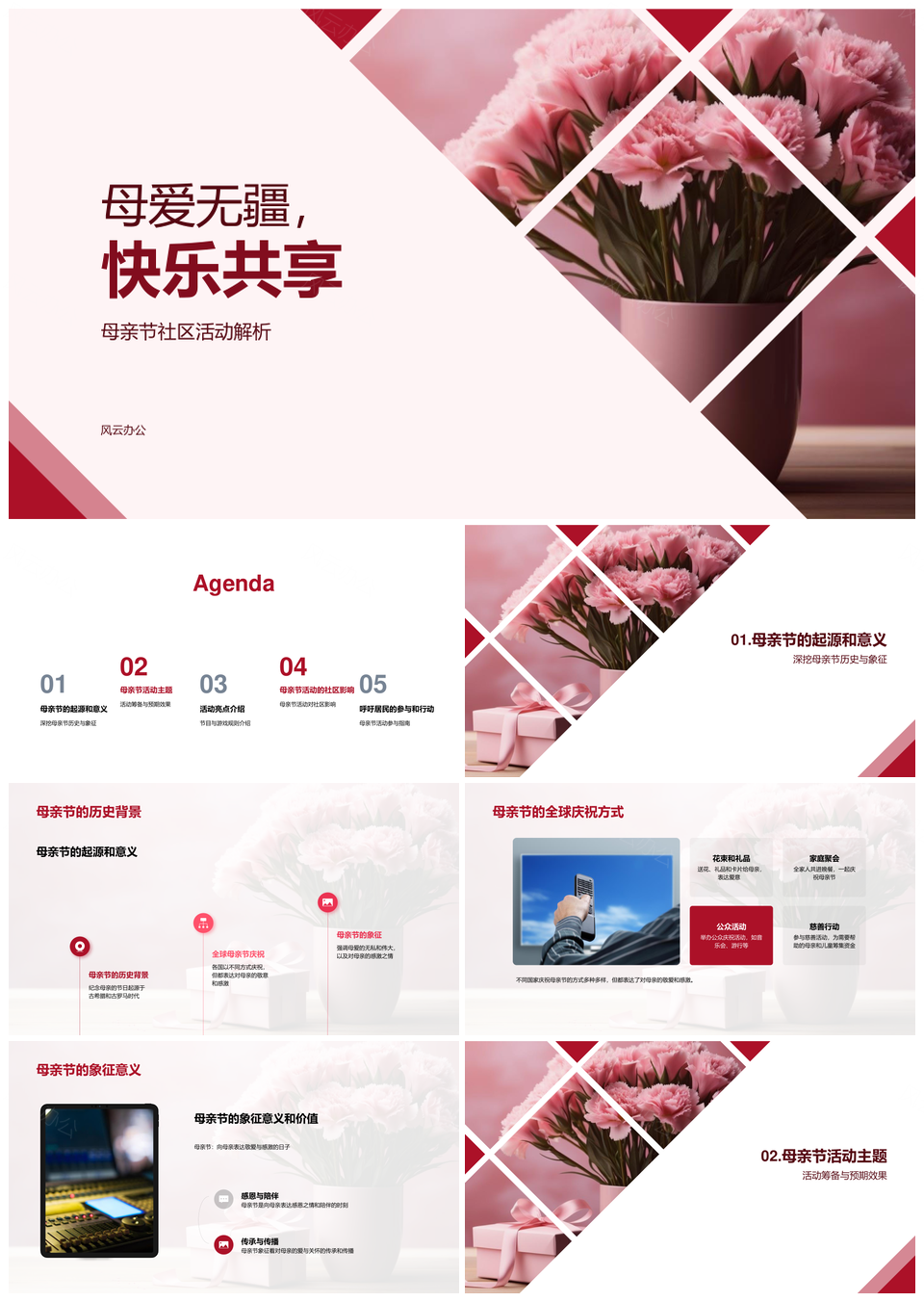 这是一张母亲节全球社区互动游戏礼赠康乃馨传爱使者PPT模板,包含母亲节、全球社区、互动游戏、礼赠、康乃馨、传爱使者等主题内容,也可用作母亲节全球社区互动游戏、全球社区互动游戏礼赠、社区互动游戏礼赠康乃馨、互动游戏礼赠康乃馨传爱使者、母亲节全球社区、全球社区互动游戏、社区互动游戏礼赠、互动游戏礼赠康乃馨、礼赠康乃馨传爱使者、母亲节全球、全球社区、社区互动游戏、互动游戏礼赠、礼赠康乃馨、康乃馨传爱使者等PPT场景使用。 风云办公提供的母亲节全球社区互动游戏礼赠康乃馨传爱使者PPT模板,下载格式为pptx,一共23页,作品中文字及图均可以修改和编辑,图片更改请在作品中右键图片并更换,文字修改请直接点击文字进行修改。