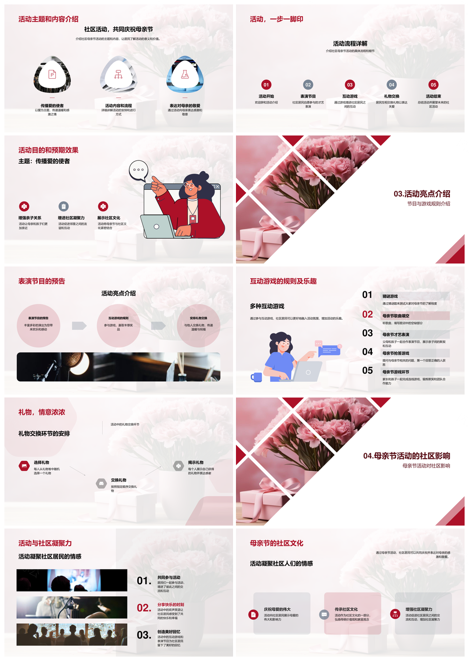 母亲节全球社区互动游戏礼赠康乃馨传爱使者PPT模板推荐