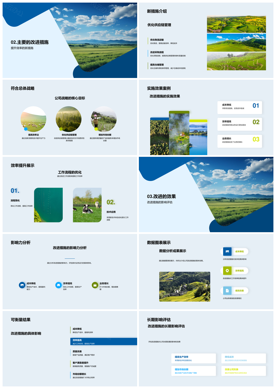 这是一张2025环保牧业改革增效战略优化草原降本规划PPT模板,包含2025、环保、牧业、改革、增效、战略、优化、草原、降本、规划等主题内容,也可用作2025环保牧业改革、环保牧业改革增效、牧业改革增效战略、改革增效战略优化、增效战略优化草原、战略优化草原降本、优化草原降本规划、2025环保牧业、环保牧业改革、牧业改革增效、改革增效战略、增效战略优化、战略优化草原、优化草原降本、草原降本规划等PPT场景使用。 风云办公提供的2025环保牧业改革增效战略优化草原降本规划PPT模板,下载格式为pptx,一共28页,作品中文字及图均可以修改和编辑,图片更改请在作品中右键图片并更换,文字修改请直接点击文字进行修改。