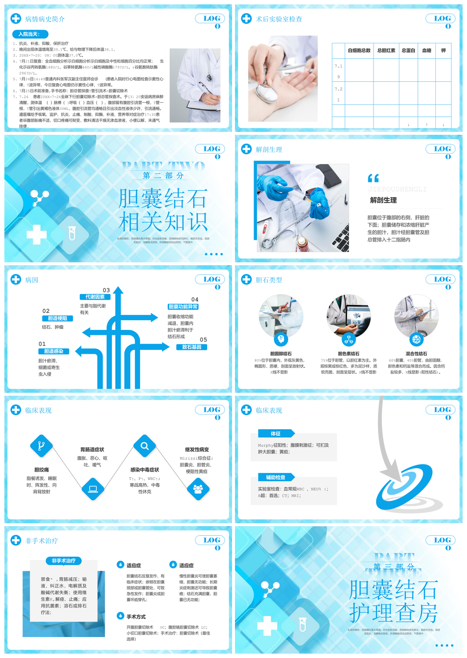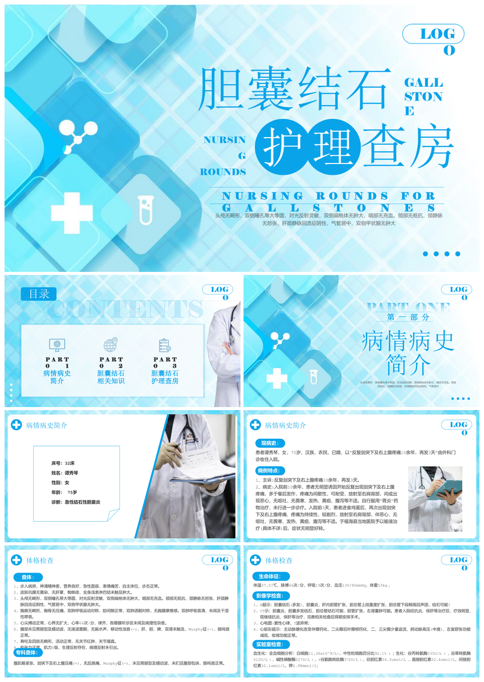 风云办公提供的蓝色简约胆囊结石护理查房动态宣传PPT模板,下载格式为pptx,一共30页,作品中文字及图均可以修改和编辑,图片更改请在作品中右键图片并更换,文字修改请直接点击文字进行修改。