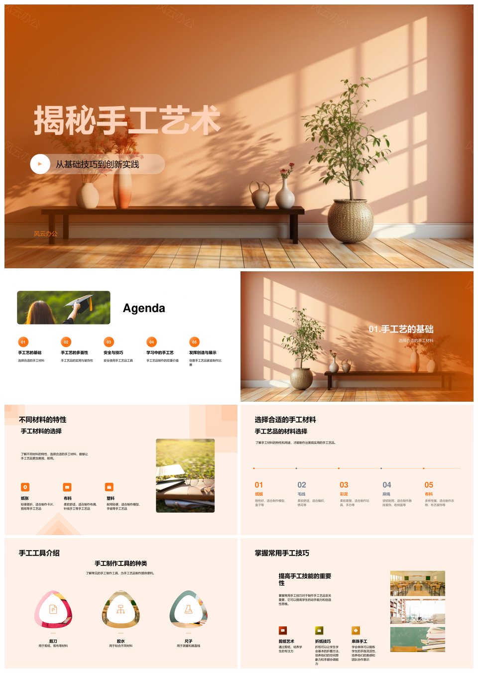 风云办公提供的手工艺术技巧创培安全工具协作教学PPT模板,下载格式为pptx,一共26页,作品中文字及图均可以修改和编辑,图片更改请在作品中右键图片并更换,文字修改请直接点击文字进行修改。