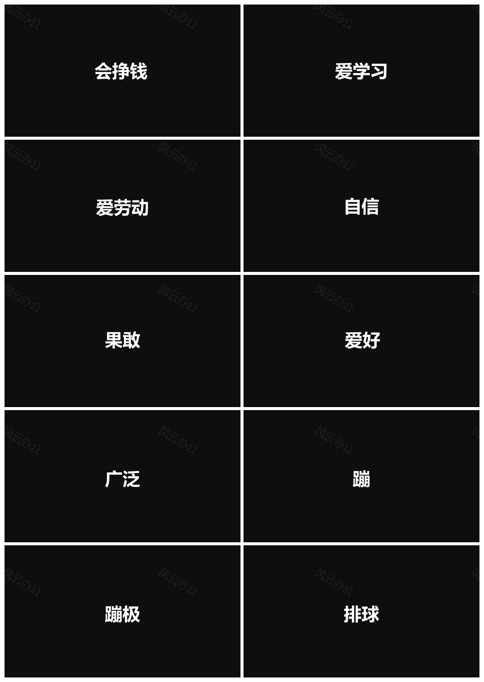 这是一张黑色70页炫酷98k神曲个人简介抖音快闪PPT模板,包含70页、炫酷、神曲、个人简介、抖音、快闪等主题内容,也可用作黑色70页炫酷98k、70页炫酷98k神曲、炫酷98k神曲个人简介、98k神曲个人简介抖音、神曲个人简介抖音快闪、黑色70页炫酷、70页炫酷98k、炫酷98k神曲、98k神曲个人简介、神曲个人简介抖音、个人简介抖音快闪、黑色70页、70页炫酷、炫酷98k、98k神曲、神曲个人简介、个人简介抖音、抖音快闪等PPT场景使用。 风云办公提供的黑色70页炫酷98k神曲个人简介抖音快闪PPT模板,下载格式为pptx,一共70页,作品中文字及图均可以修改和编辑,图片更改请在作品中右键图片并更换,文字修改请直接点击文字进行修改。