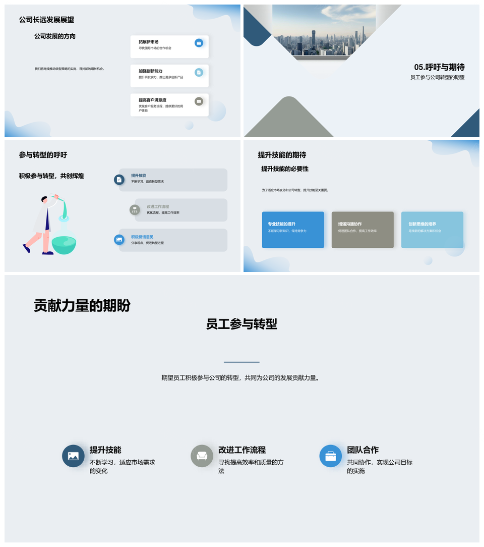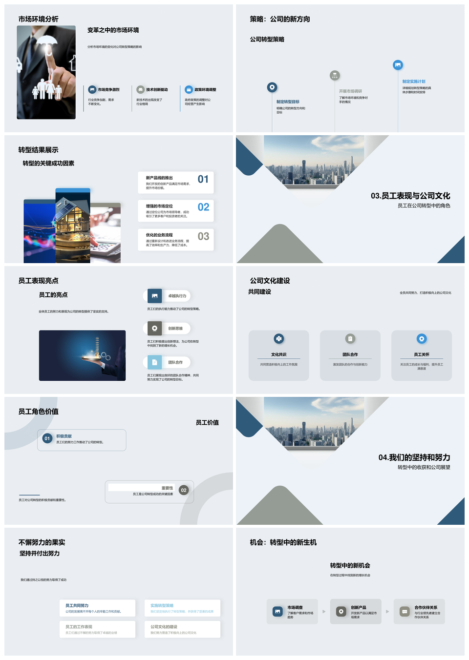 风云办公提供的转型共创共赢笃行聚力擎天业绩PPT模板,下载格式为pptx,一共23页,作品中文字及图均可以修改和编辑,图片更改请在作品中右键图片并更换,文字修改请直接点击文字进行修改。