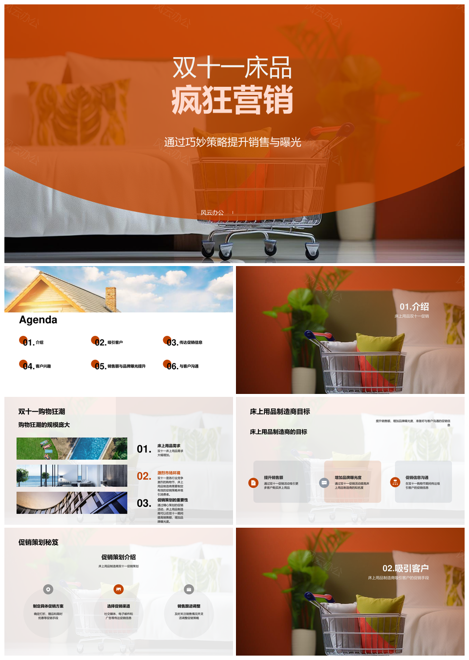 风云办公提供的双十一床品促销策划冲销售提品牌曝光PPT模板,下载格式为pptx,一共27页,作品中文字及图均可以修改和编辑,图片更改请在作品中右键图片并更换,文字修改请直接点击文字进行修改。