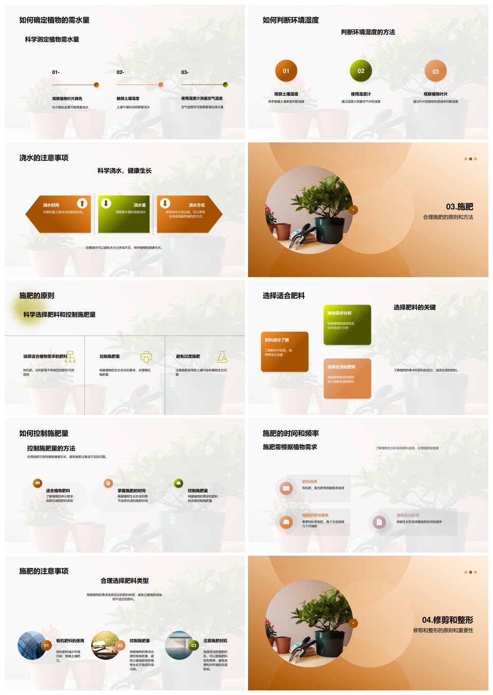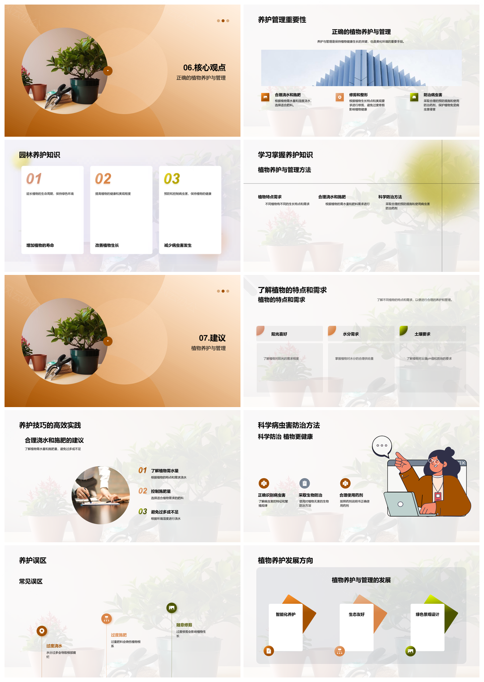 风云办公提供的植物养护管理全攻略新手到专家PPT模板,下载格式为pptx,一共38页,作品中文字及图均可以修改和编辑,图片更改请在作品中右键图片并更换,文字修改请直接点击文字进行修改。