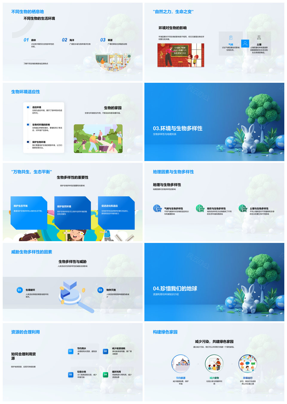 风云办公提供的小学生生物地理环境栖息地与资源利用PPT模板,下载格式为pptx,一共23页,作品中文字及图均可以修改和编辑,图片更改请在作品中右键图片并更换,文字修改请直接点击文字进行修改。